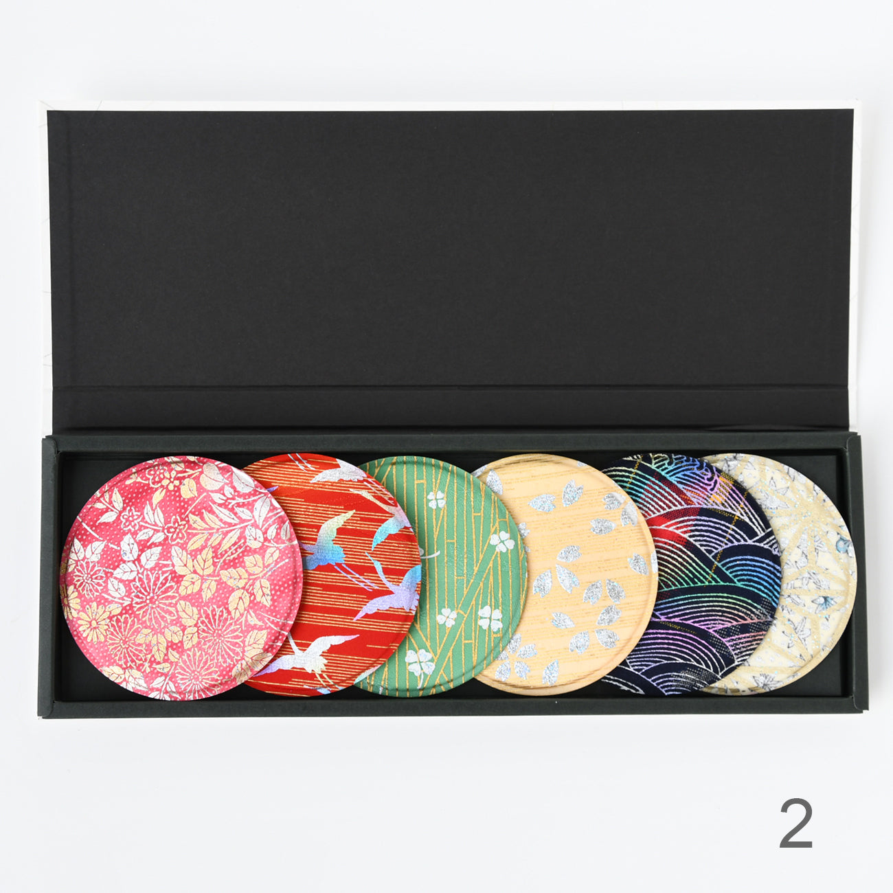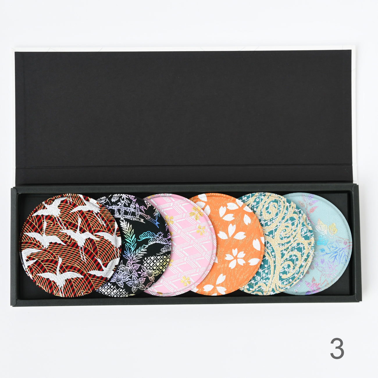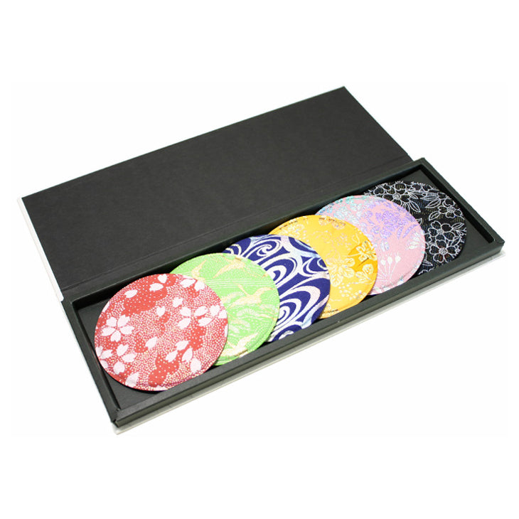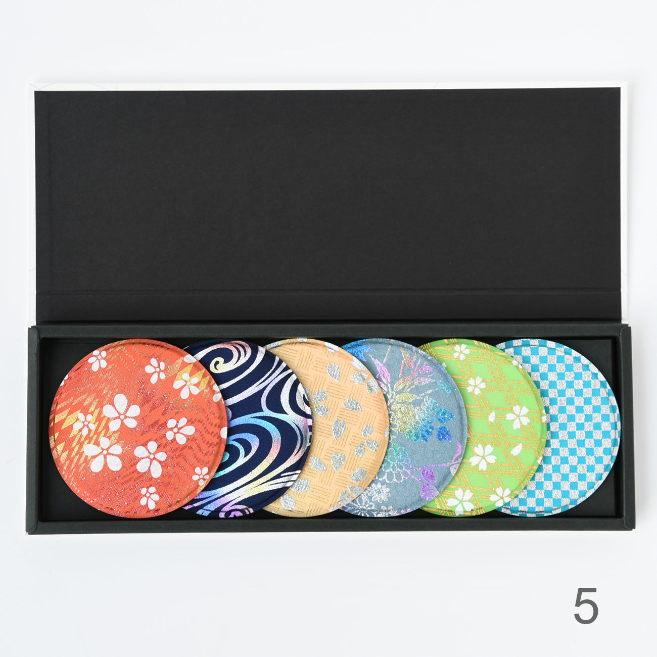 金彩を施した着物地のコースターです。艶やかな装いで、格別のおもてなしを演出します。