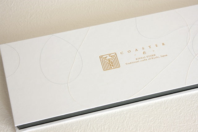 金彩とは、金や銀といった箔、金属粉などを着物に接着加工する技術の総称です。図案や色彩を引き立たせ、華やかに加飾する目的で用いられ、京友禅の特徴のひとつとなっています。 「 coaster -彩- 」は、瑞々しい印象とともにテーブルを飾り立て、大切なお客様に対する特別なおもてなしを演出します。