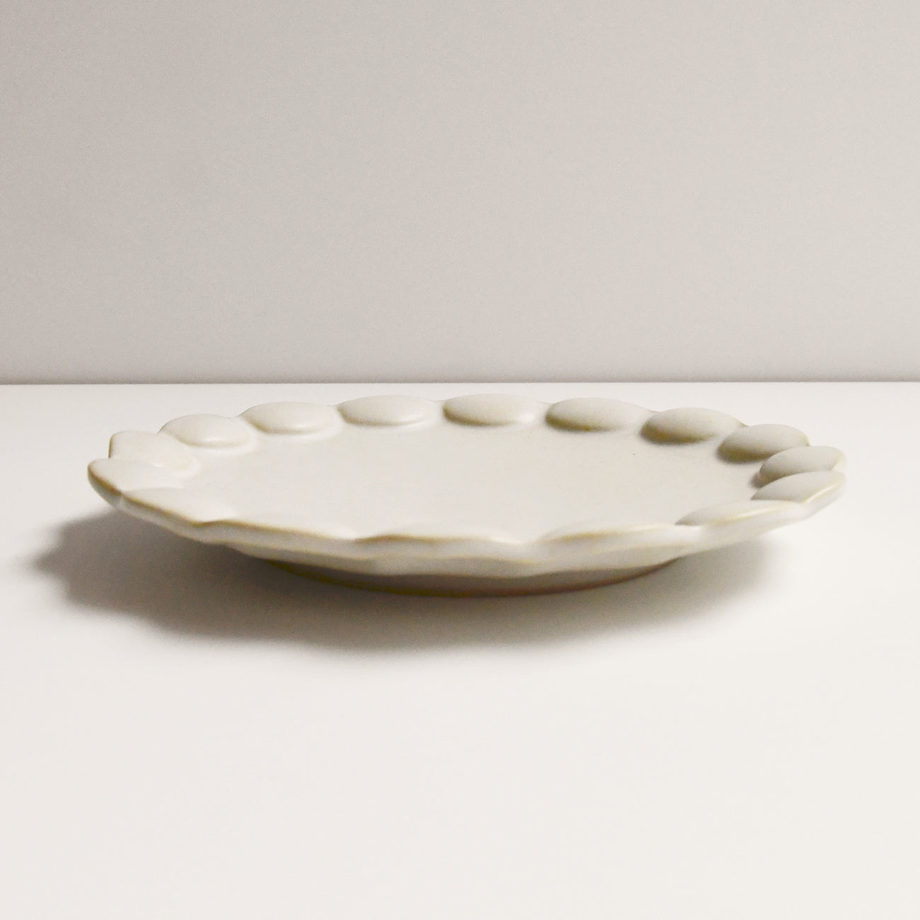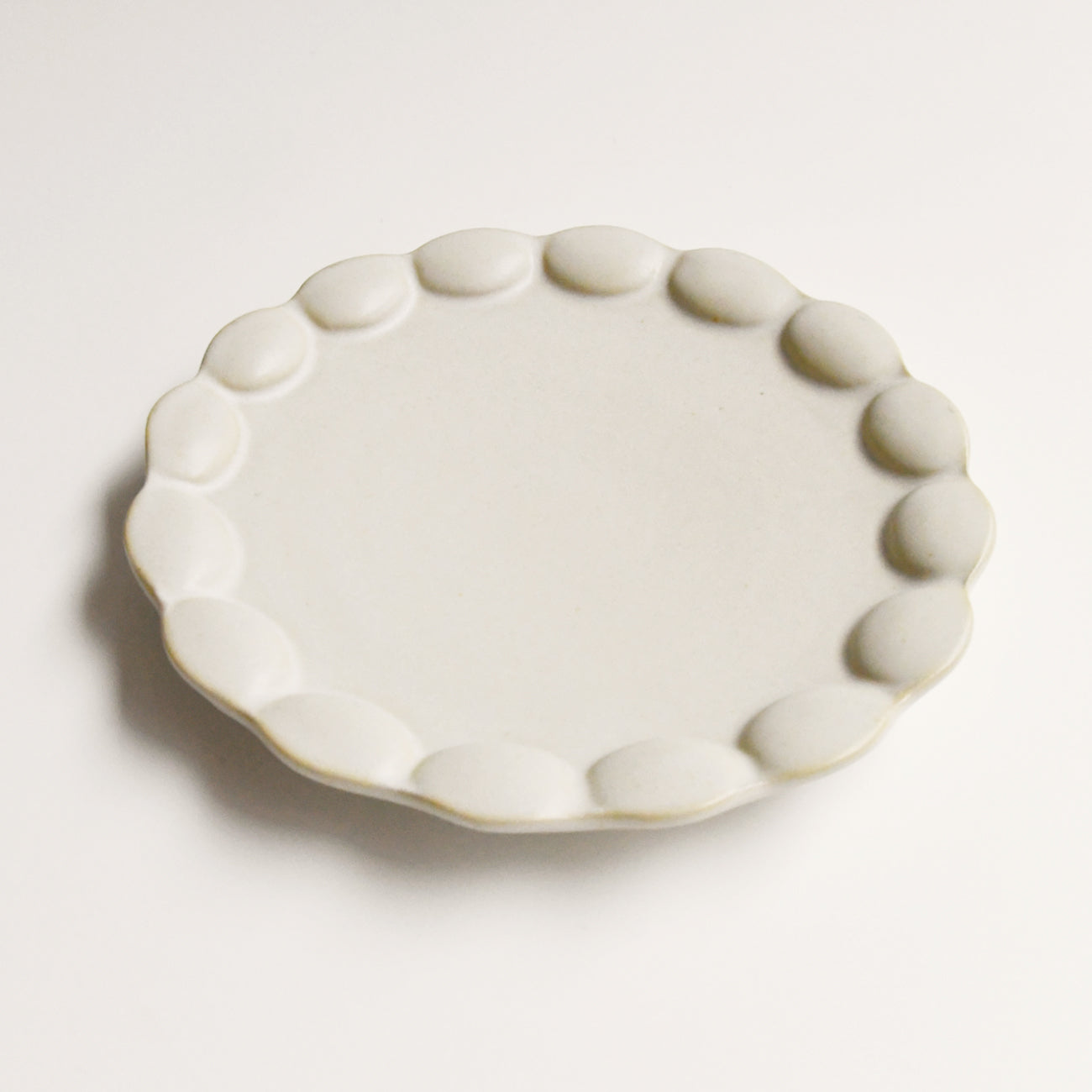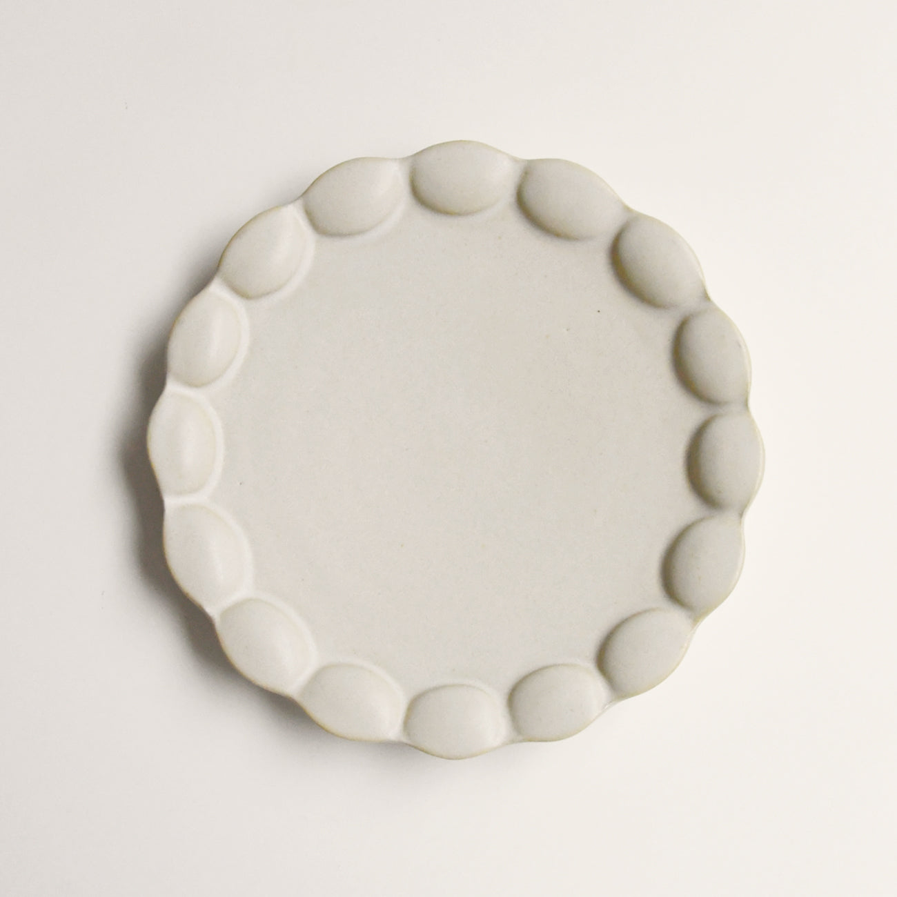 縁にぷくぷくした膨らみが施されて、まるで花が咲いているような形をしているプレートです。