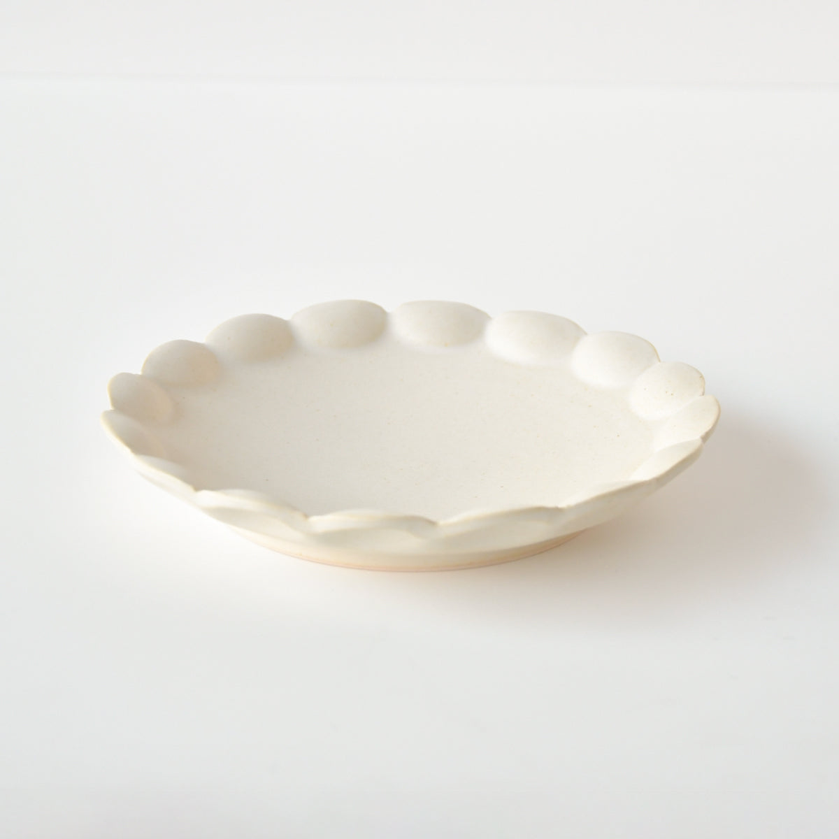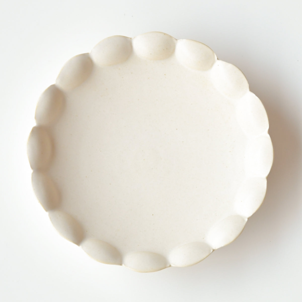 縁にぷくぷくした膨らみが施されて、まるで花が咲いているような形をしているプレートです。