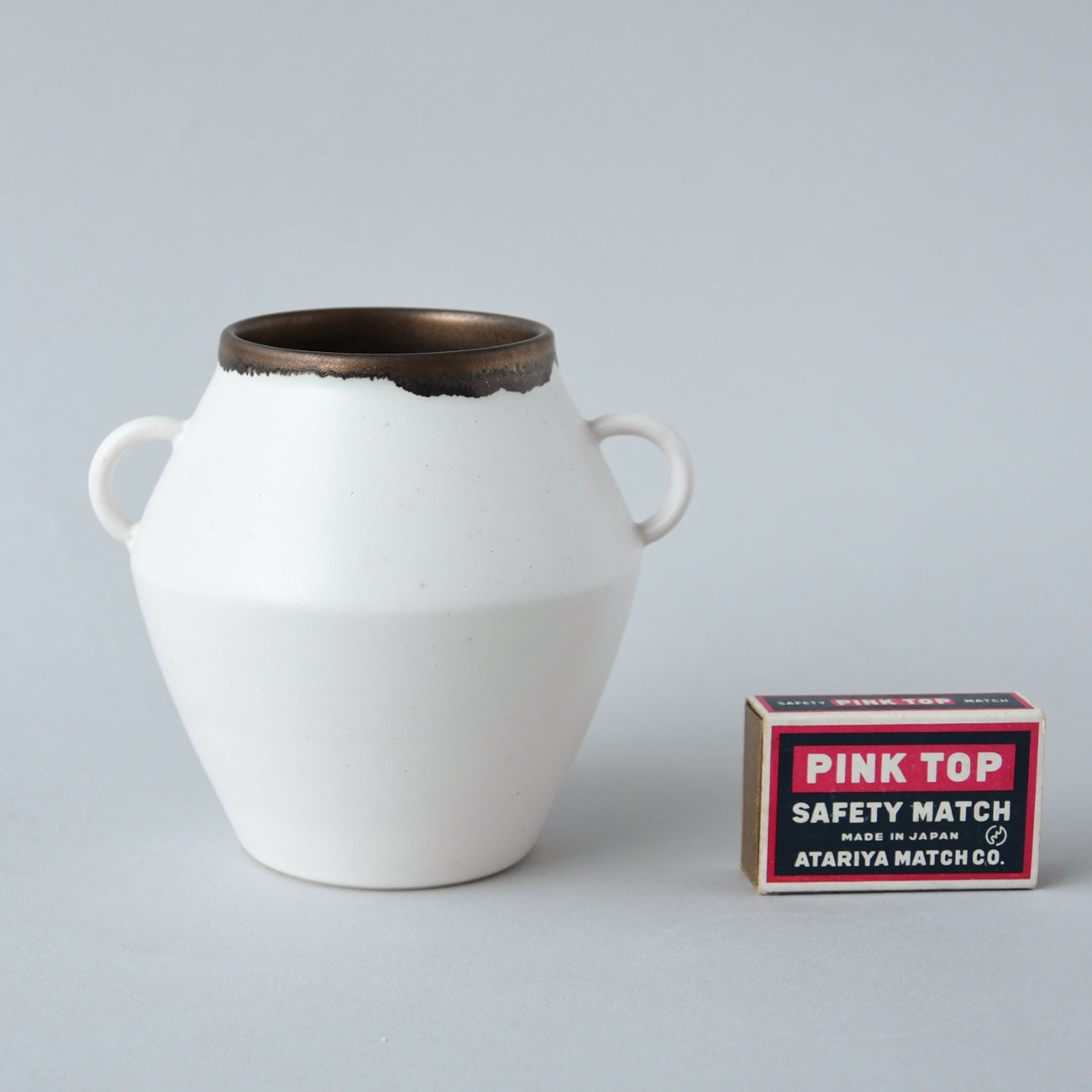 白と銅の釉薬が印象的なフラワーベース