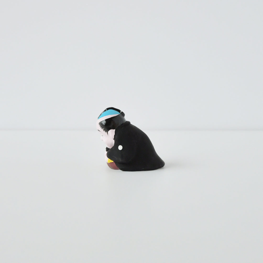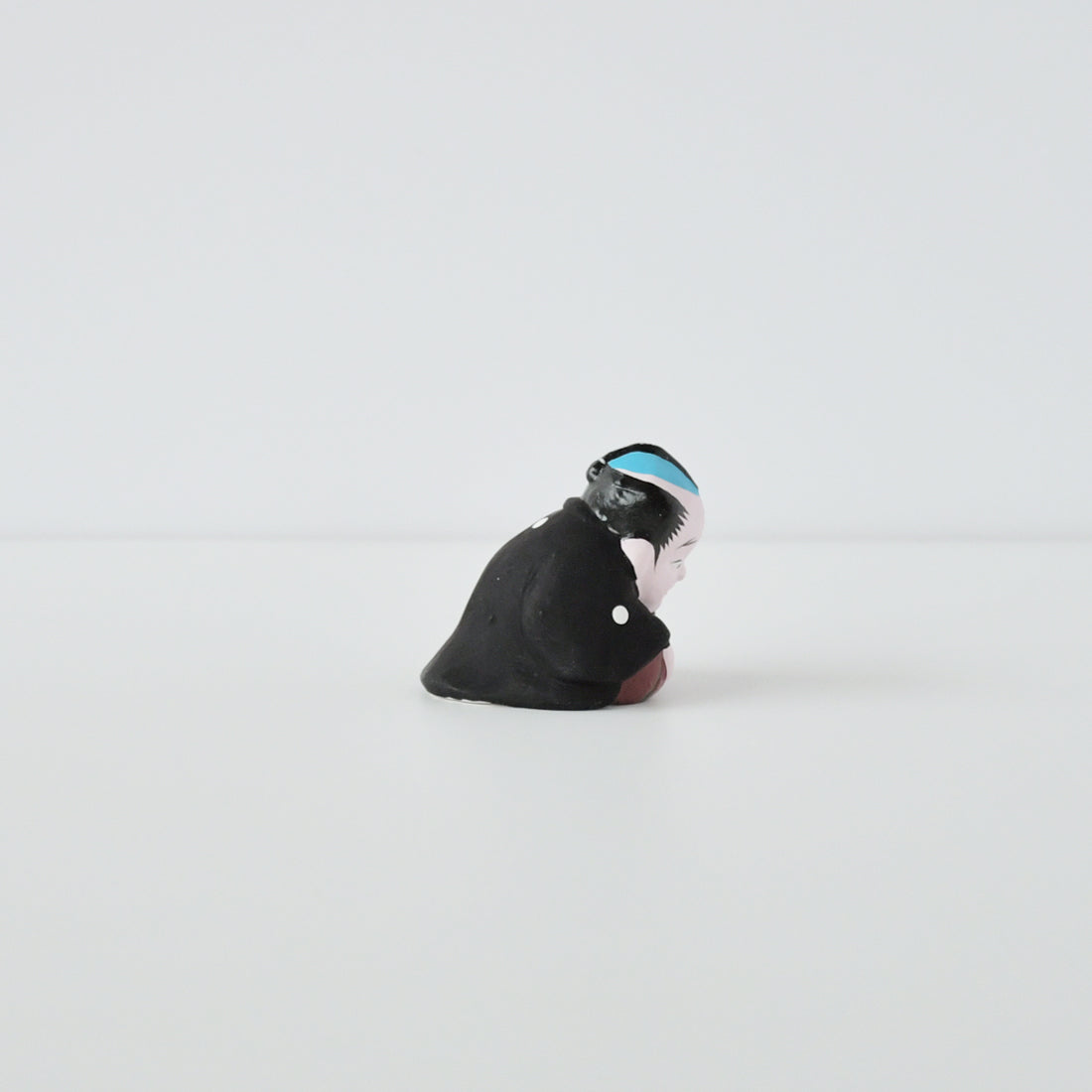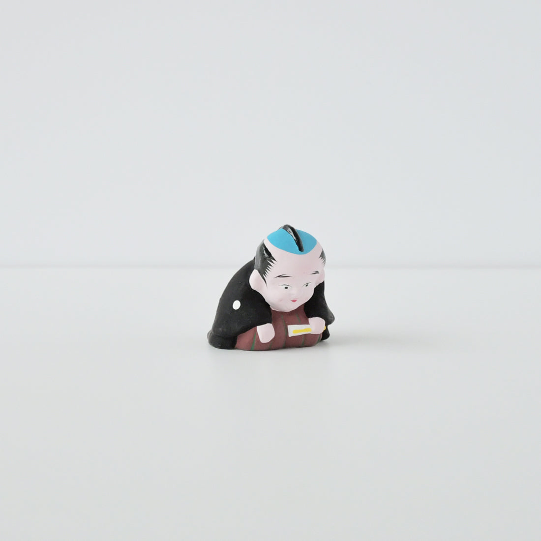 口上と名付けられた福助さん。羽織を着て深々と頭を下げ、改まって何やら話し出しそうです。