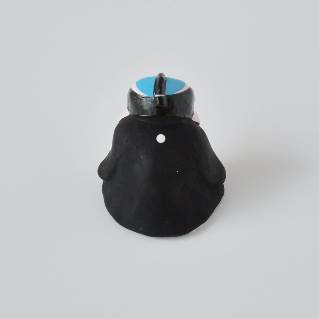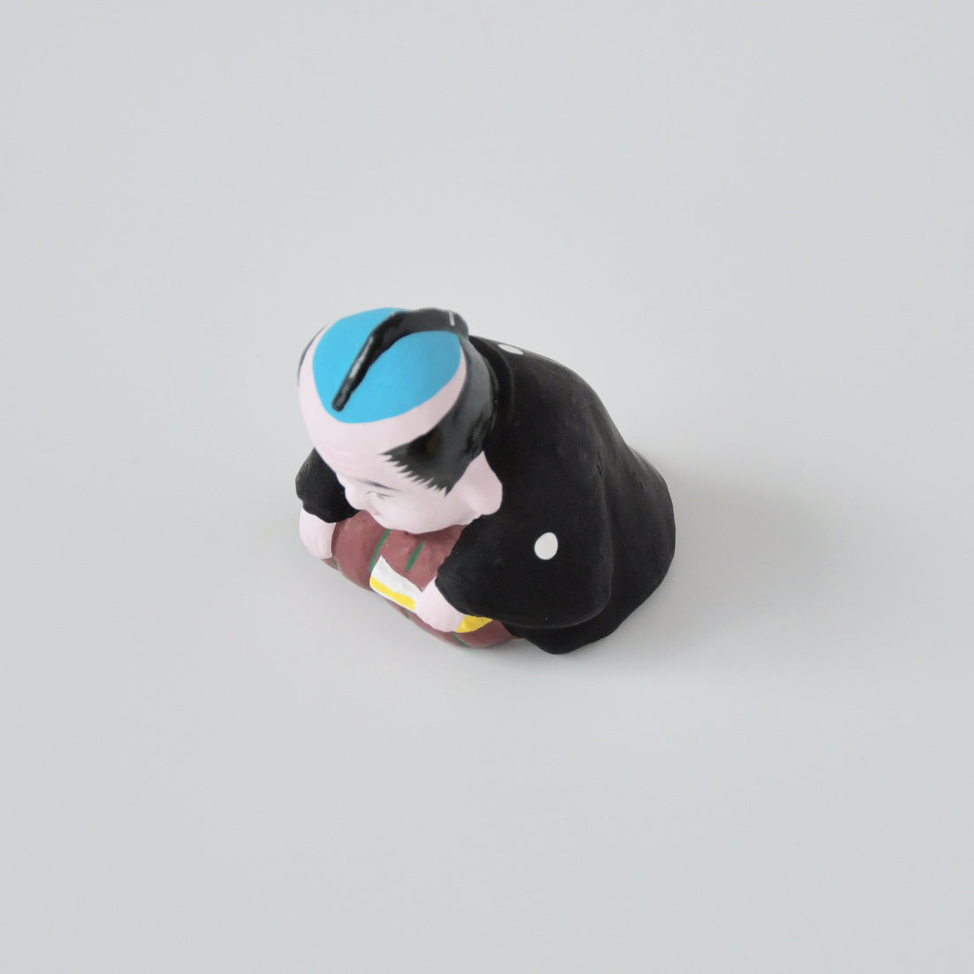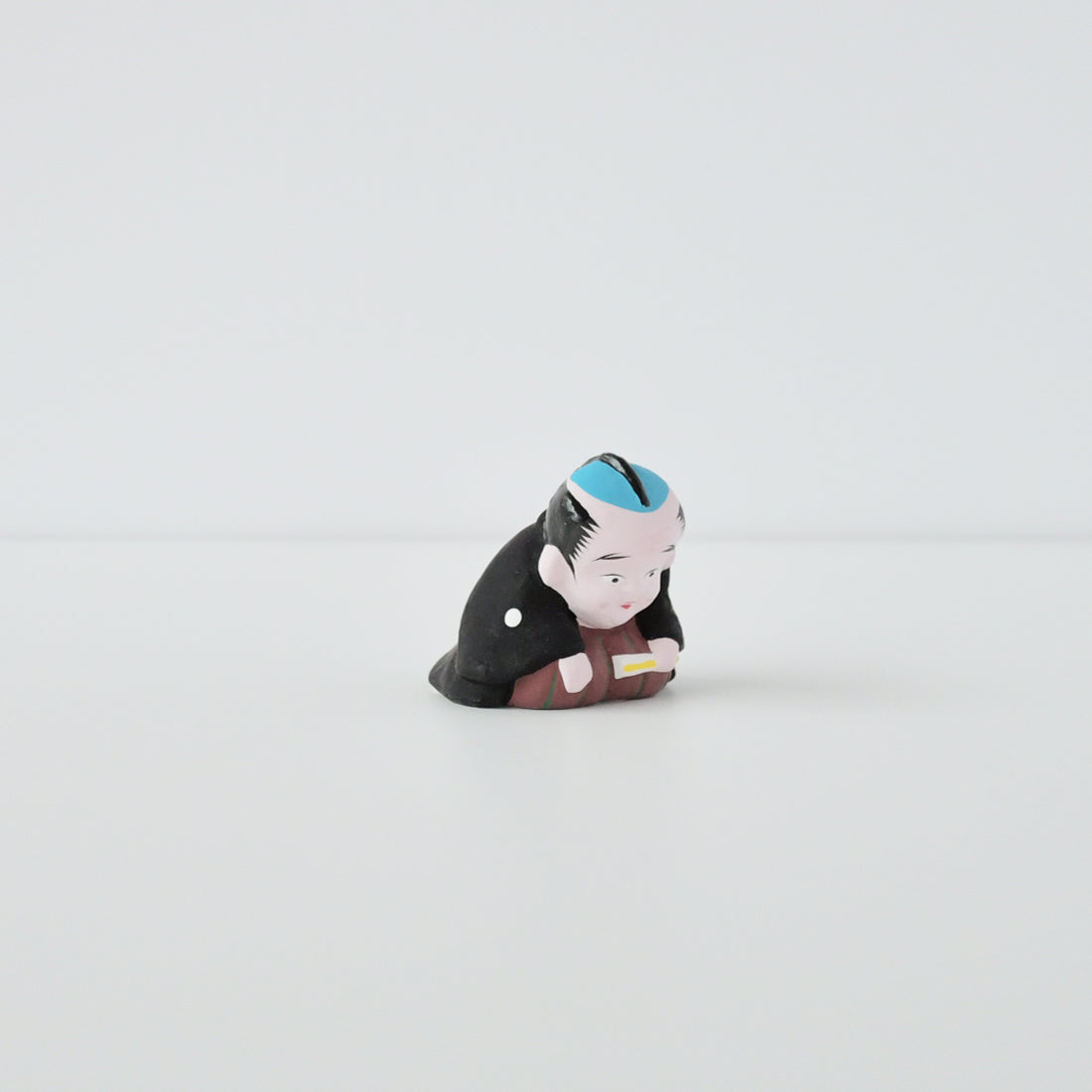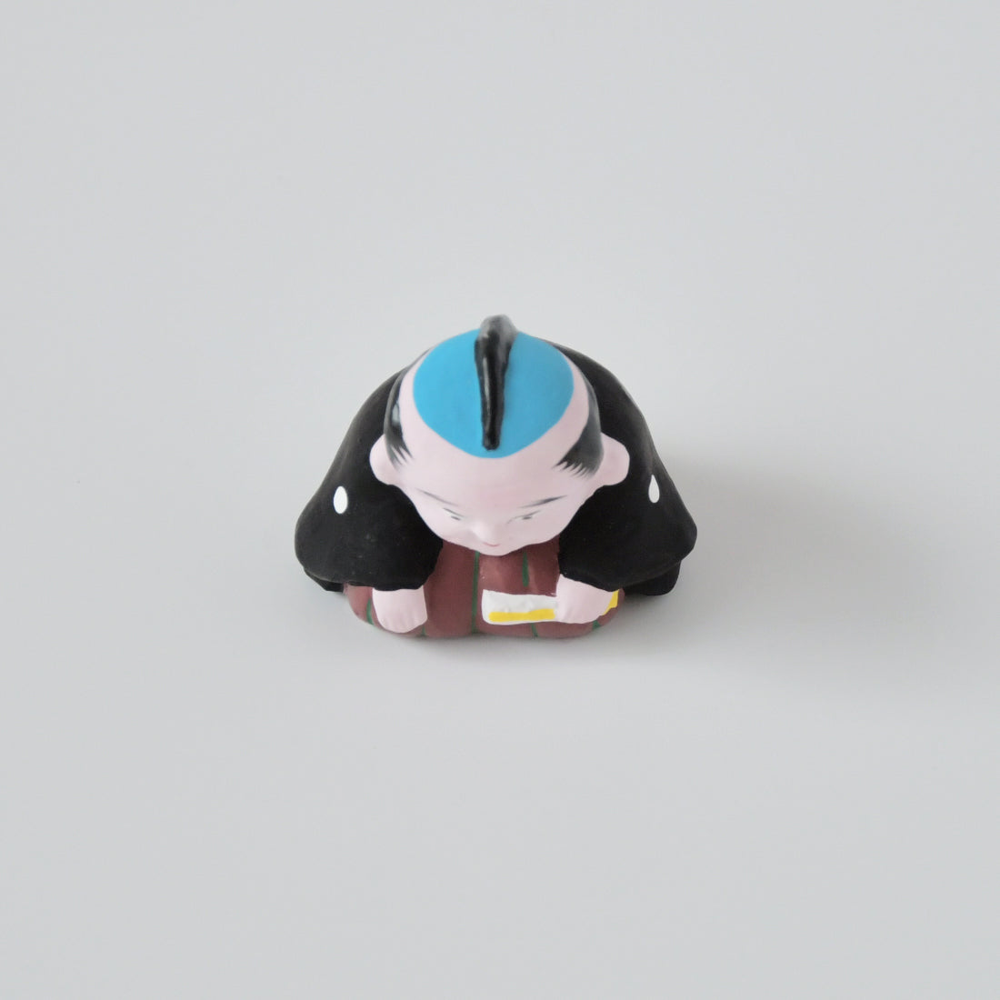 口上と名付けられた福助さん。羽織を着て深々と頭を下げ、改まって何やら話し出しそうです。