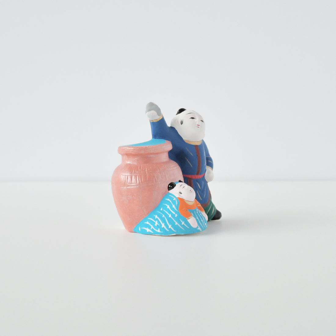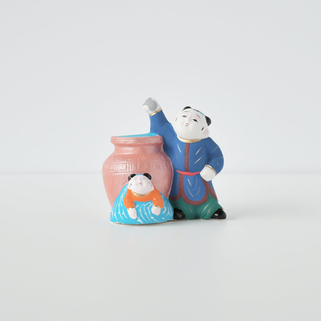 ある日その大瓶で遊んでいた子供達の一人が過って落ちてしまい、温公はとっさに石を投げ、大瓶を割って助けました。