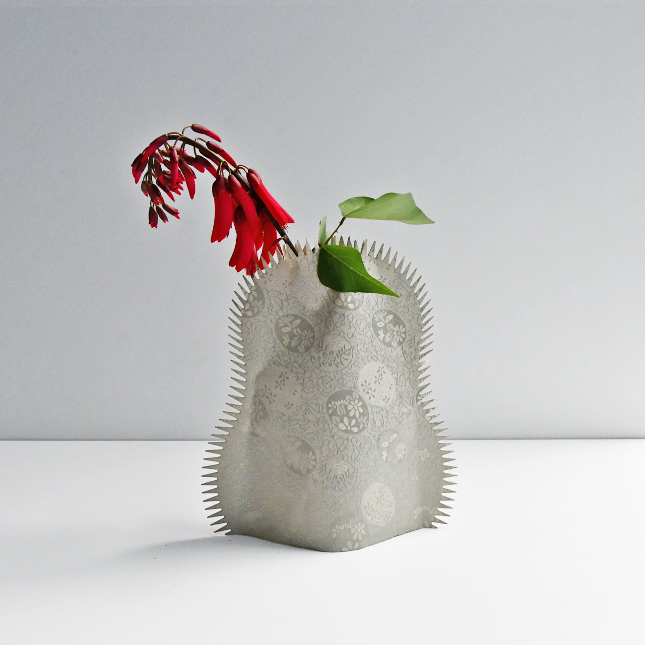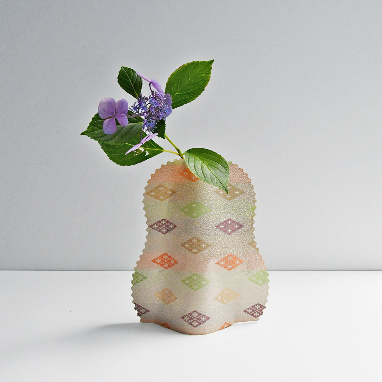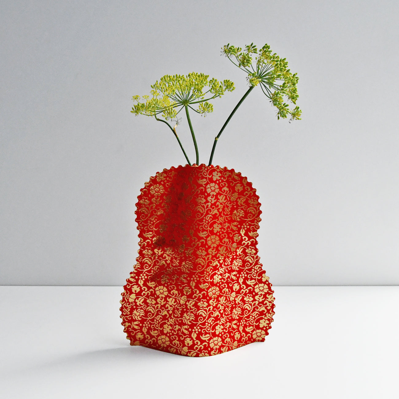 丁寧に織られた表装裂(金襴・緞子)を気軽に使える花器に仕立てました。