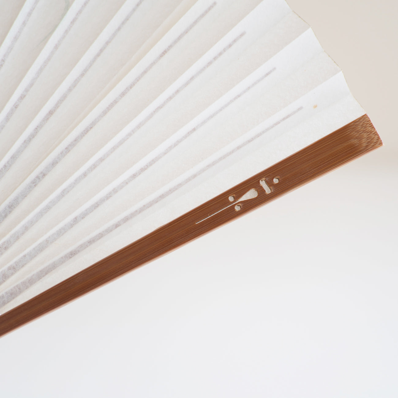 親骨には滋賀県の安曇川で採れた竹を使用し、“京”の一文字が透し彫りされています。