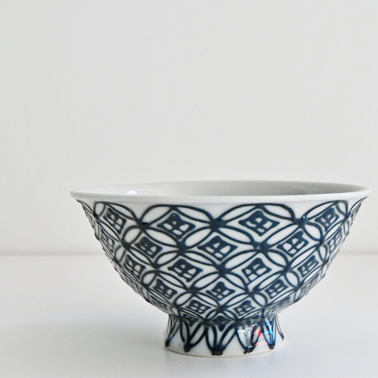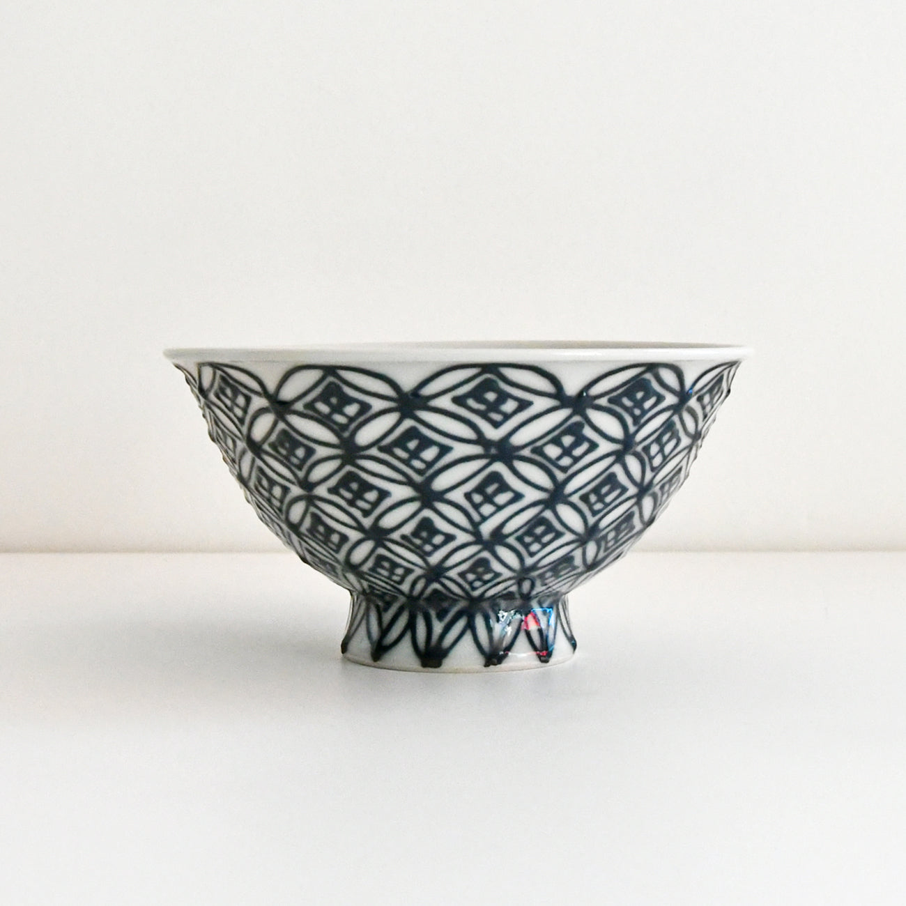 粘土をペースト状にしたものを袋から絞り出して立体的に柄を描く「いっちん盛り」の技法を用いて七宝柄を描いています。