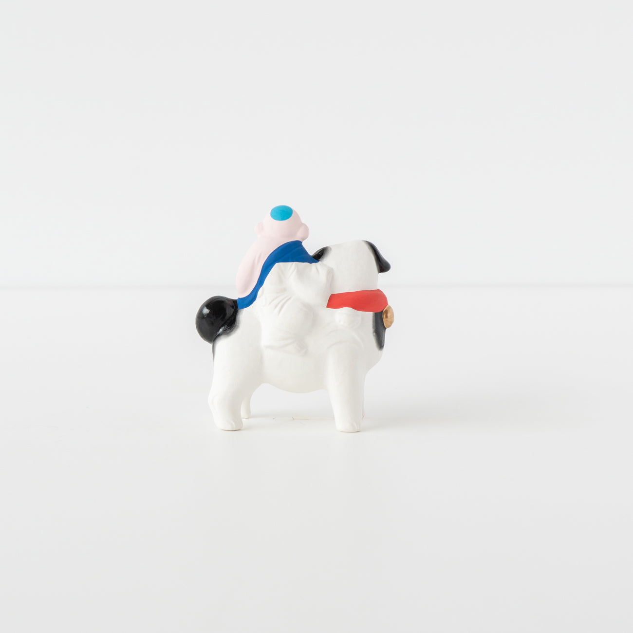 狆は江戸時代から明治時代にかけて人々に愛された小型犬。室内で飼われ、黒い耳と巻いた尻尾が特徴。しかし明治時代になり、各種の洋犬が日本に入ってくるとその人気に押されて次第に姿を消し、大正時代に激減したと云われています。