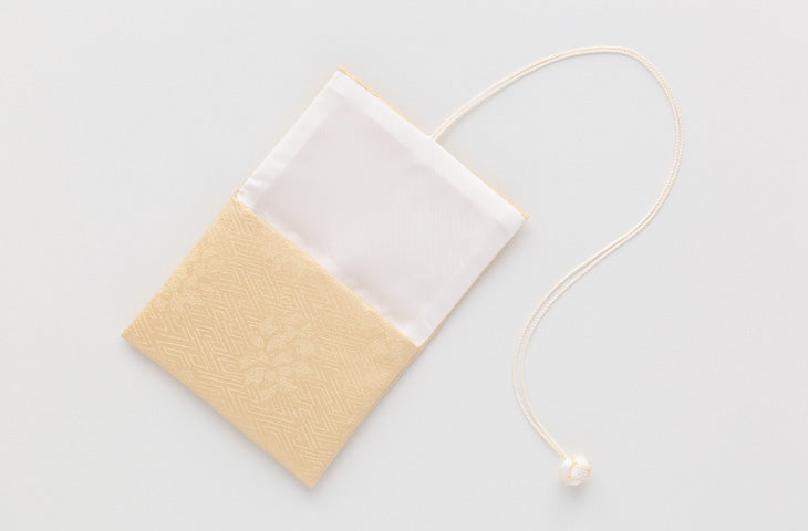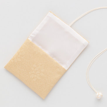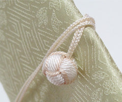 生地が放つ上品な光沢の大人っぽさと組紐のあわじ玉の可愛さを併せ持つジュエリー用のポーチです。