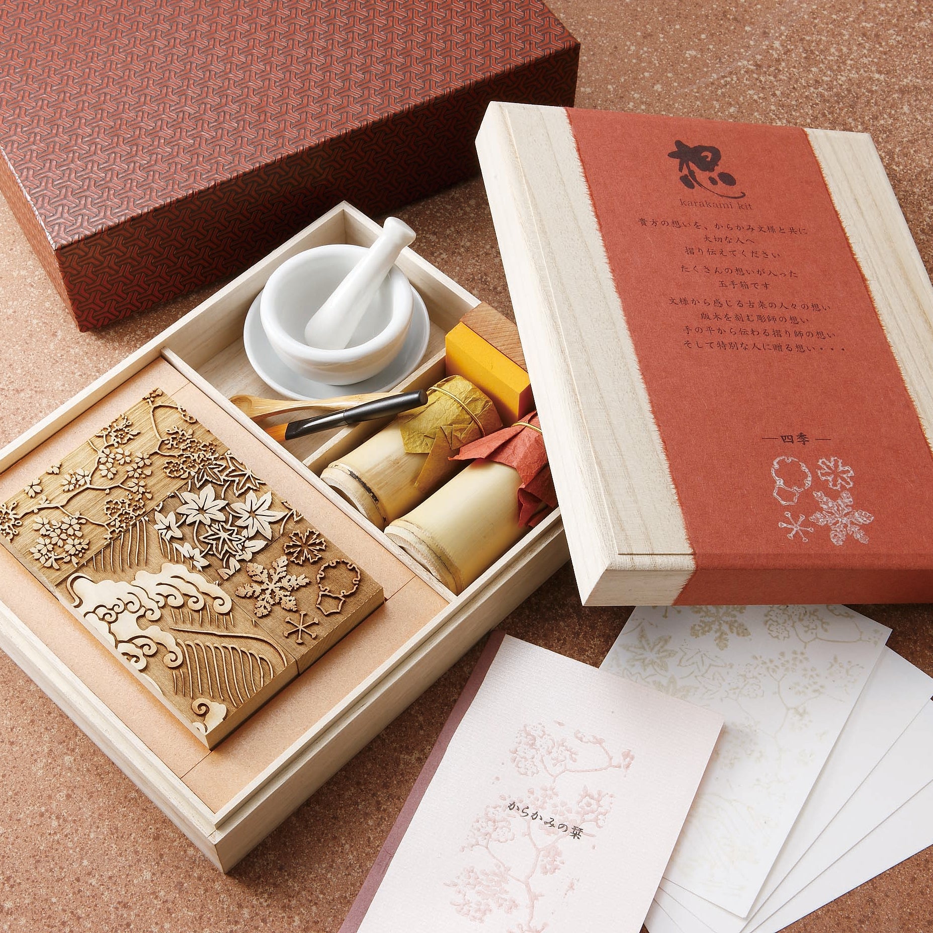 「Karakami kit」は、京からかみを摺り上げるときの色々な“想い”を感じ、楽しめるお道具箱。