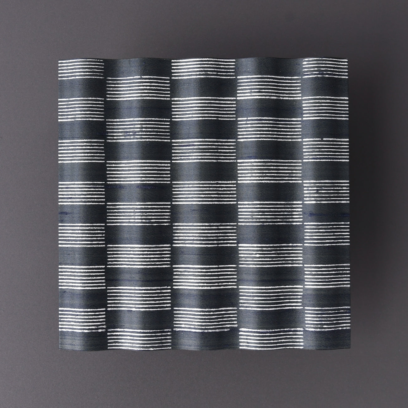 市松の由来は、江戸時代の歌舞伎役者・佐野川市松が愛用したためとされています。「七筋市松」は、七本の線の束によって構成されています。