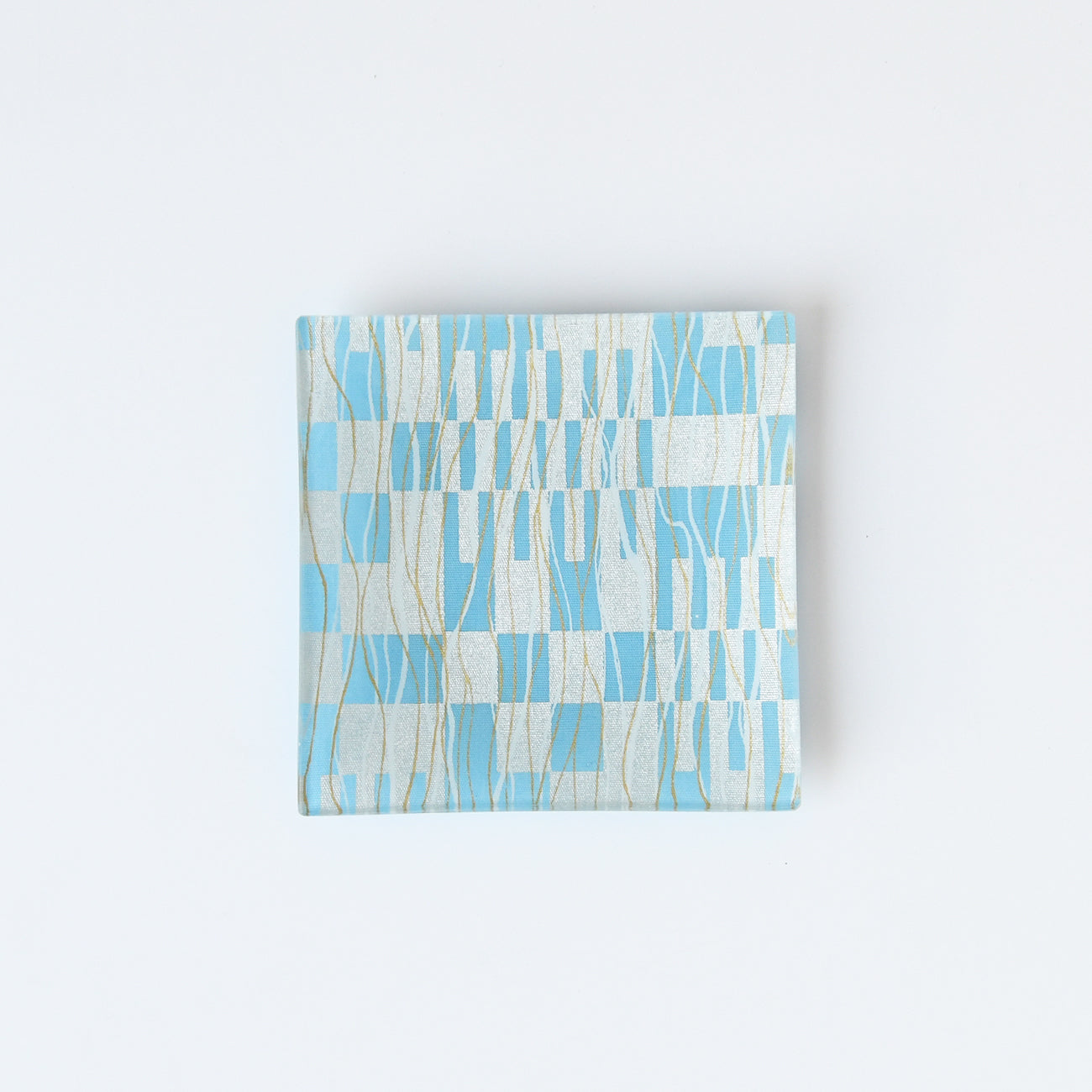 市松ブルー柄: ガラス・コットン(生地)・銀箔・金泥・胡粉・樹脂