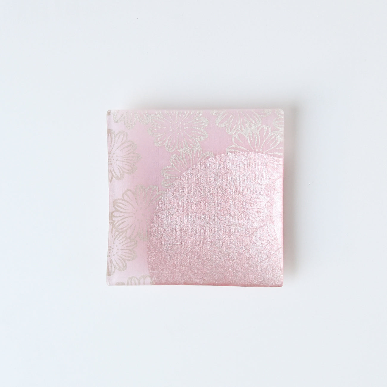 フラワーピンク柄: ガラス・コットン(生地)・ピンク箔(銀台)・銀泥・樹脂