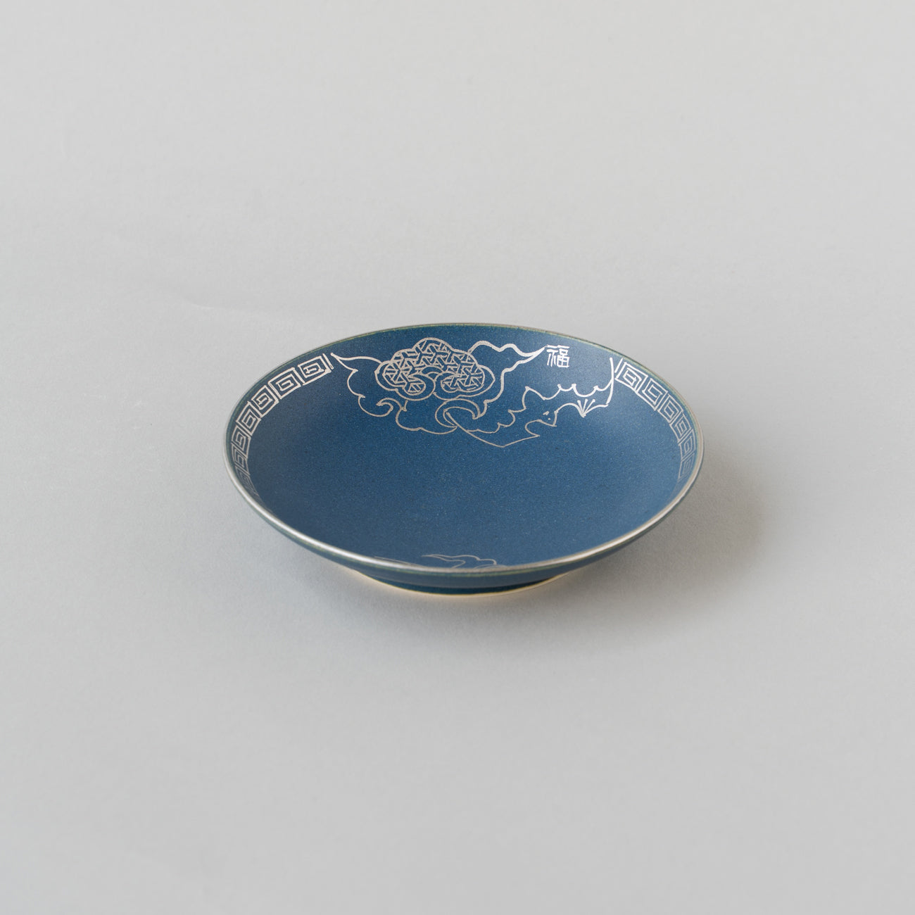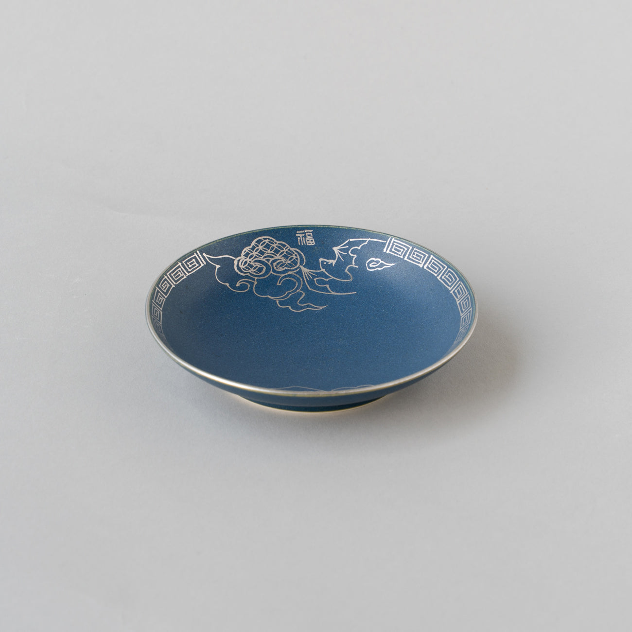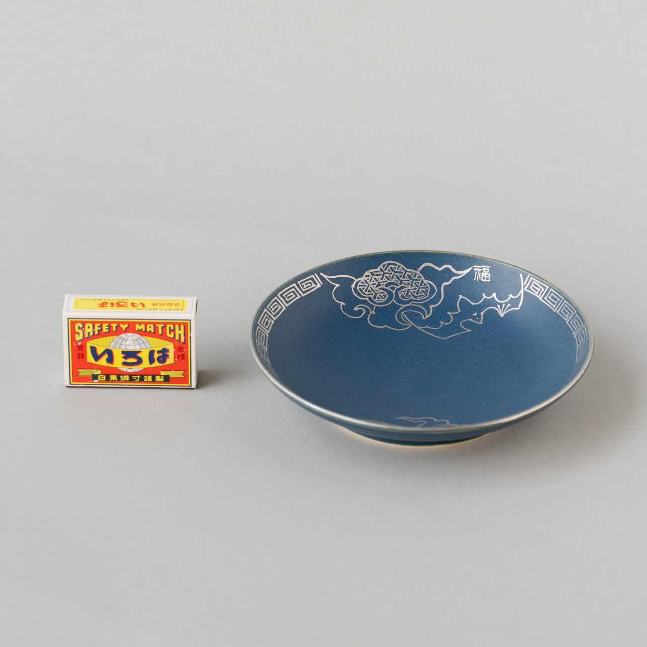 マット釉に白金彩で雲と蝙蝠を描いたお皿