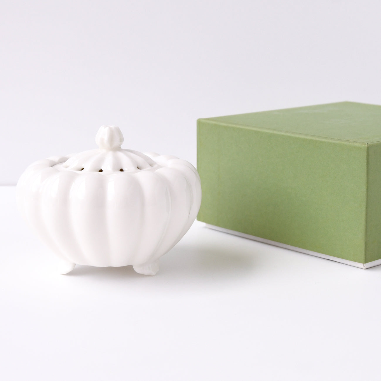 西洋かぼちゃのような形の香炉。エレガントな佇まいなので、和室だけでなく、洋室にインテリアとして置いても良さそうです。