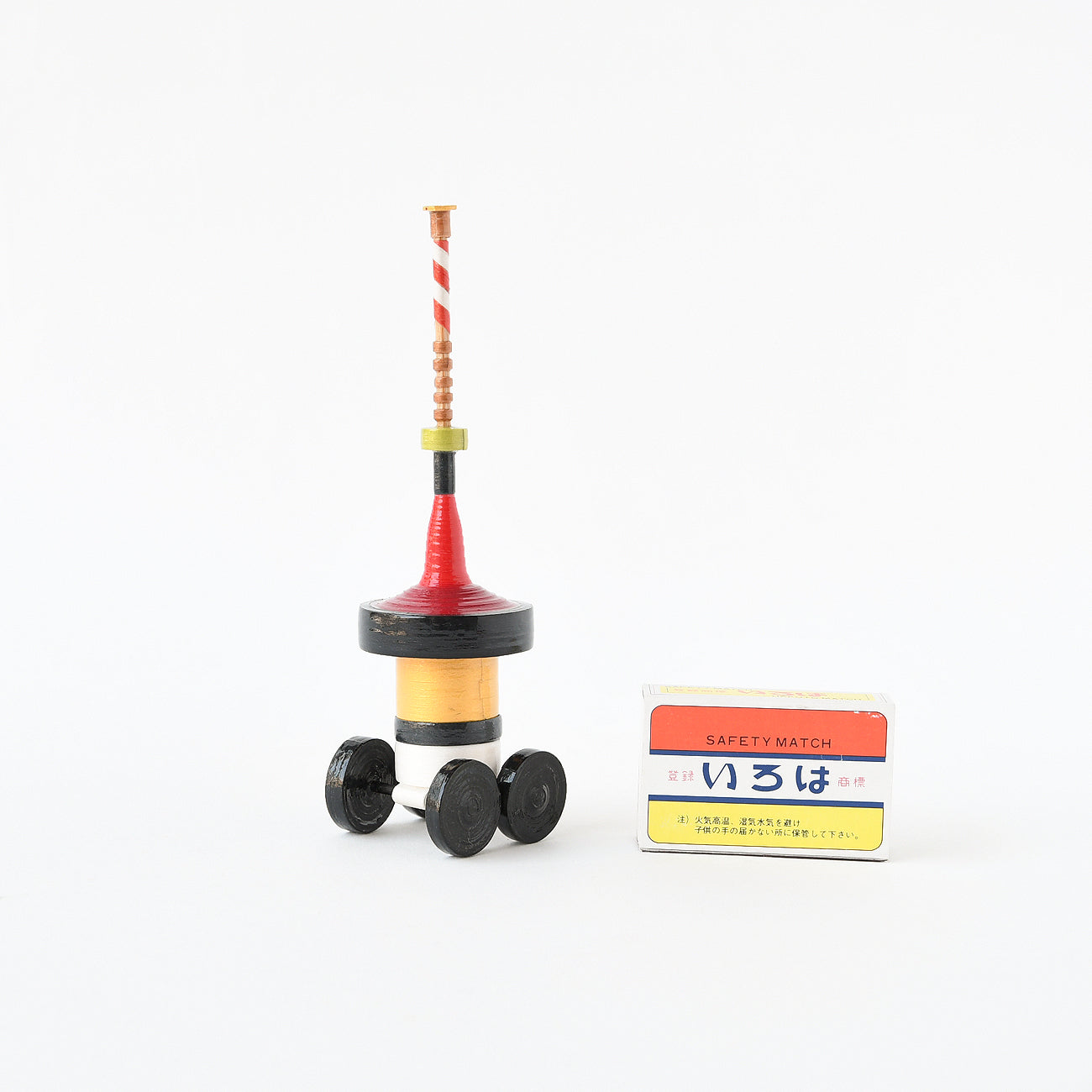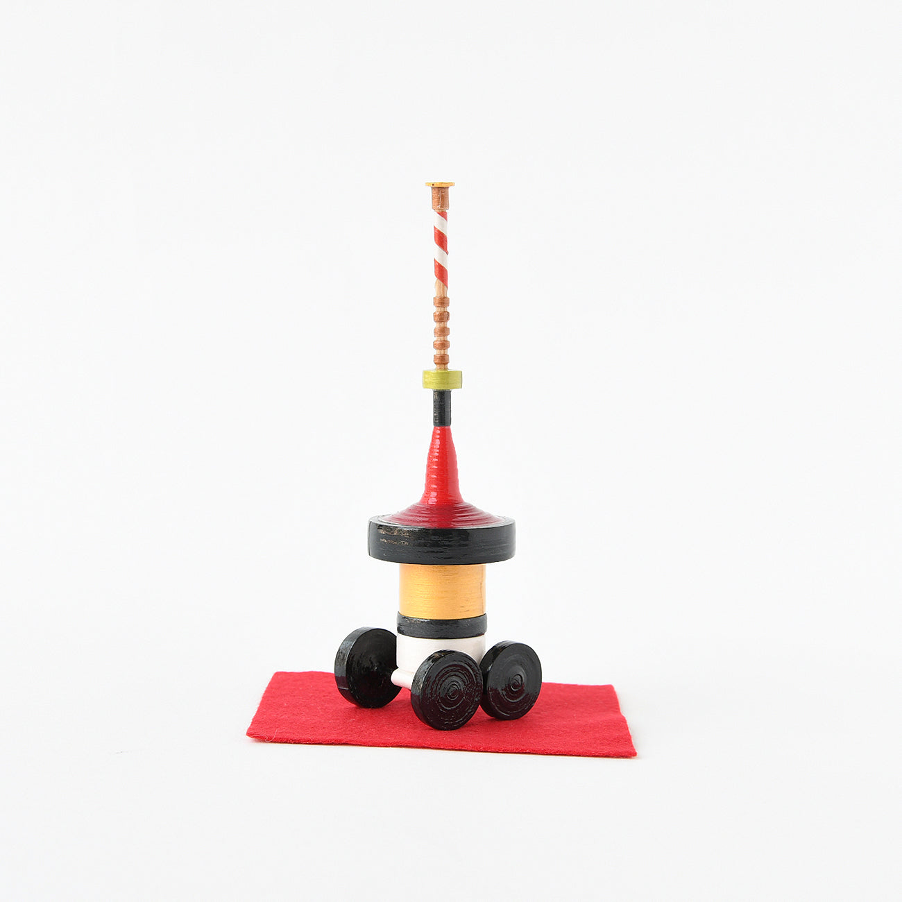 京都の伝統工芸品・京こまの伝統を受け継ぐ、ただ一つの工房。京こまは、桃山時代に上流階級の女性が竹などの芯に着物の端切れを巻き付けて作ったお座敷こまが起源。現在は、木綿の平紐を竹芯に巻きつけて作られている。祇園祭の山鉾を精密に再現したものなど、芸術性の高いこまは鑑賞用としても人気。