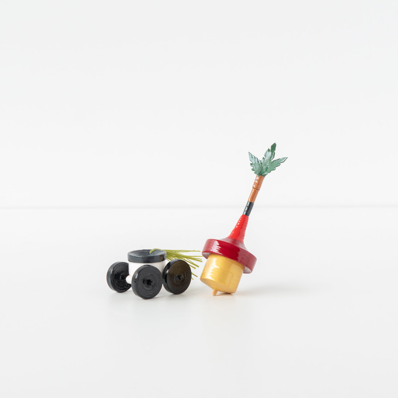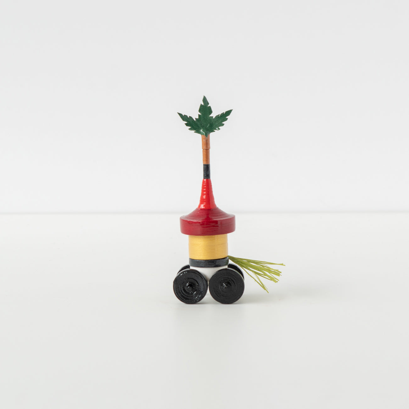 綿紐(色染めをした木綿糸の束)を巻き重ねて作った京こまの北観音山。
