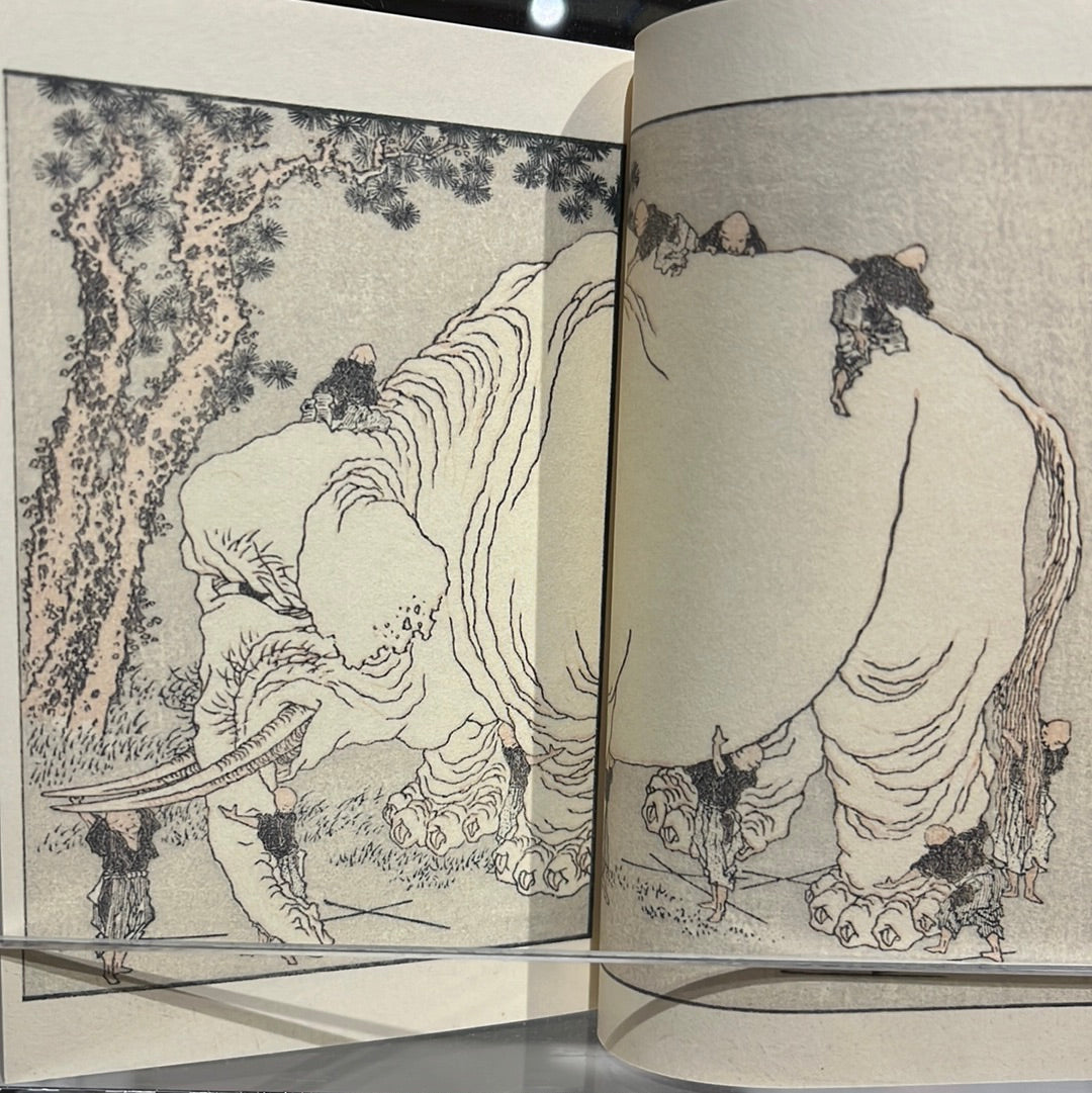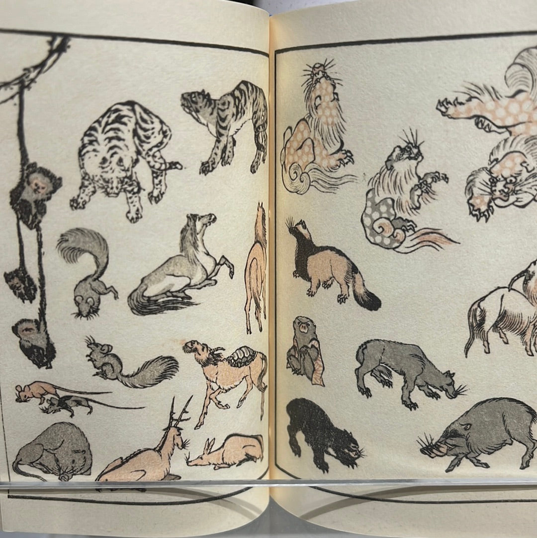 『北斎漫画』をテーマ別に再編集した豆本シリーズ。犬や猫など身近な動物から当時の珍獣 象・虎、伝説上の動物 龍・白澤・獏や鯨に人魚・河童など北斎の動物大集合。