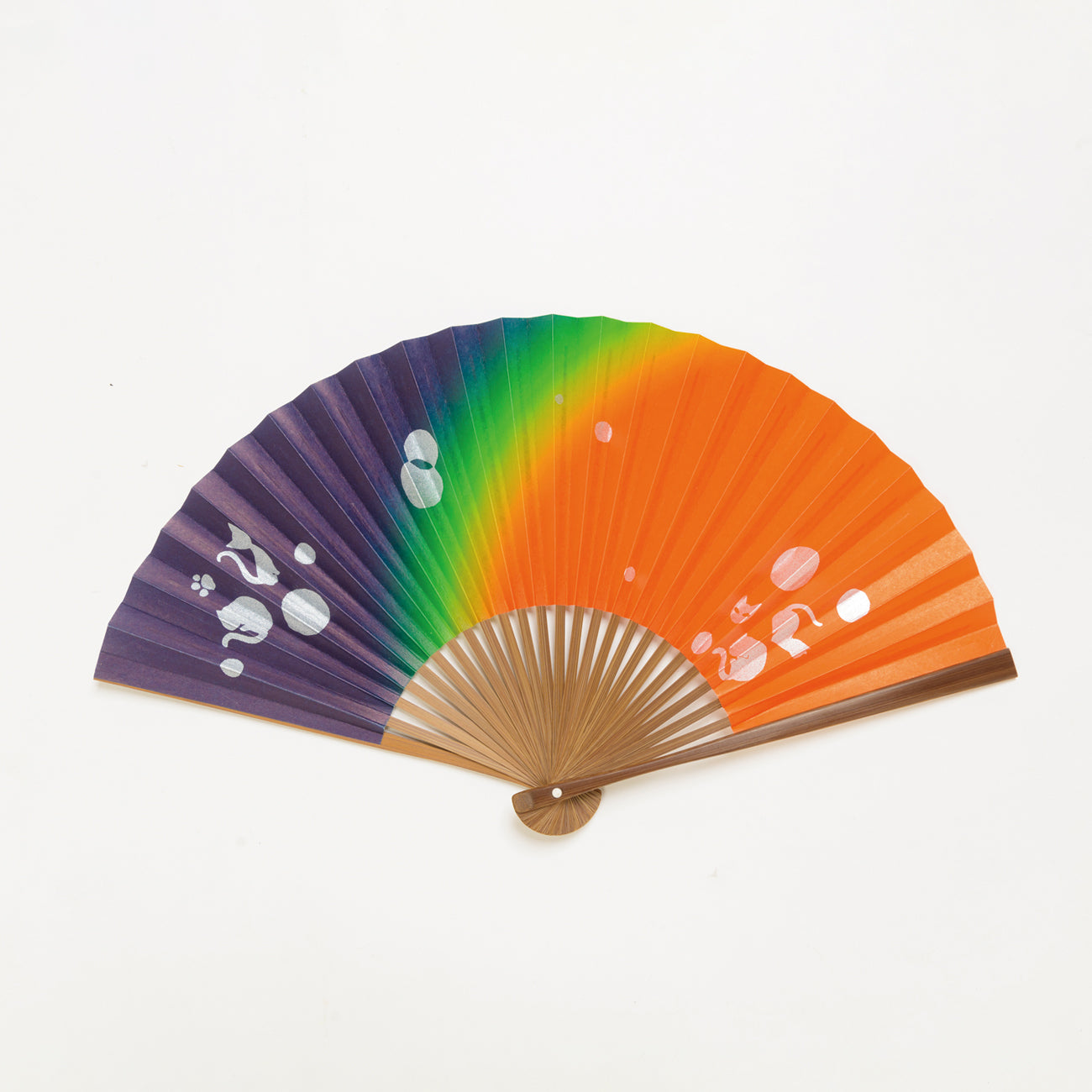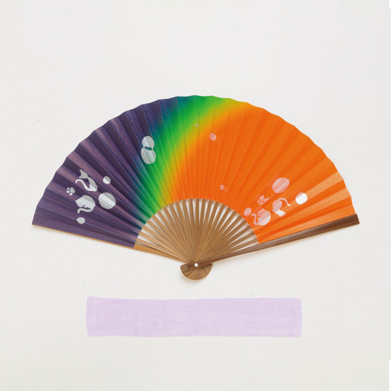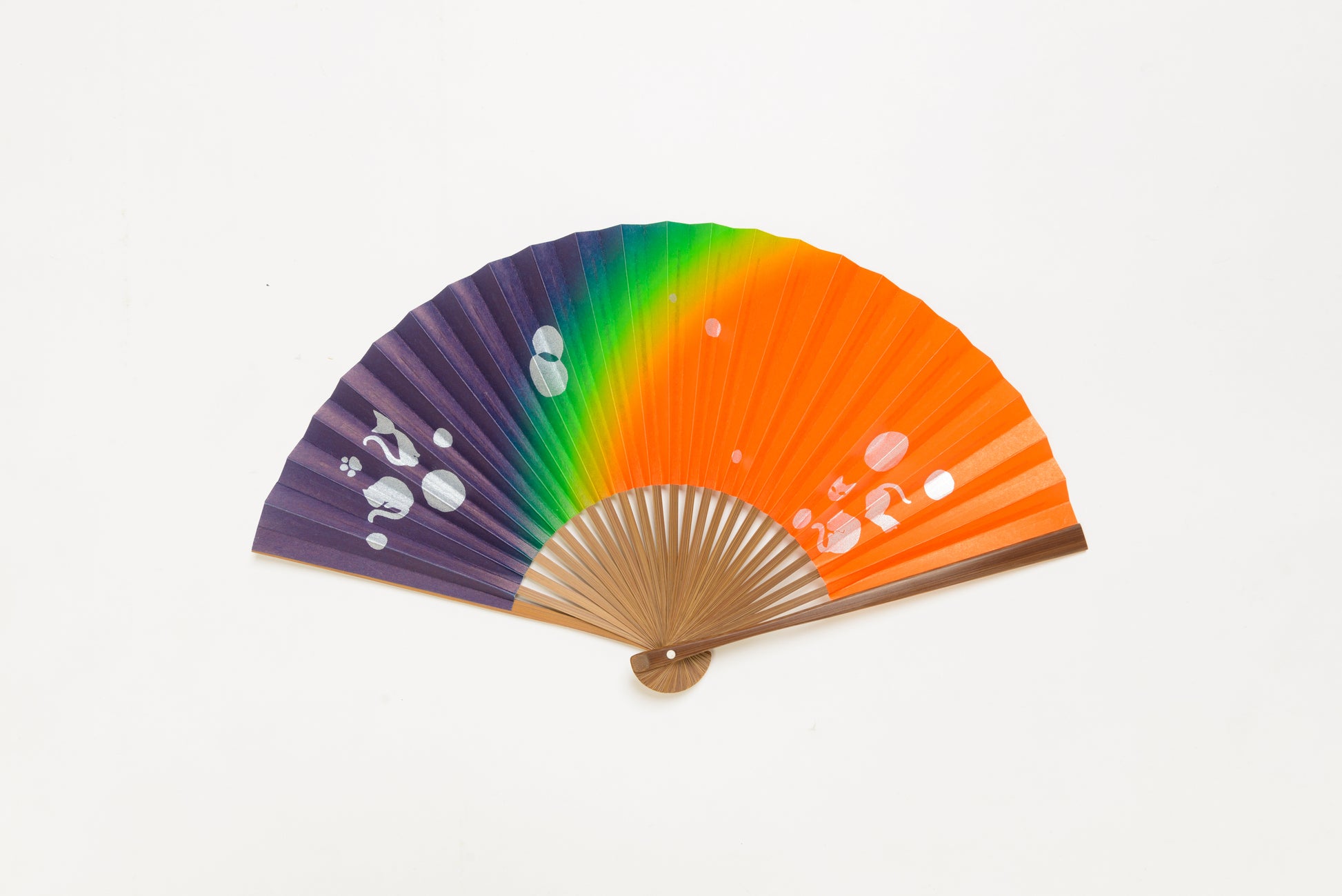 扇面の猫は、スクリーン印刷 裏面は職人の手により一枚一枚シケ引きを施しています。