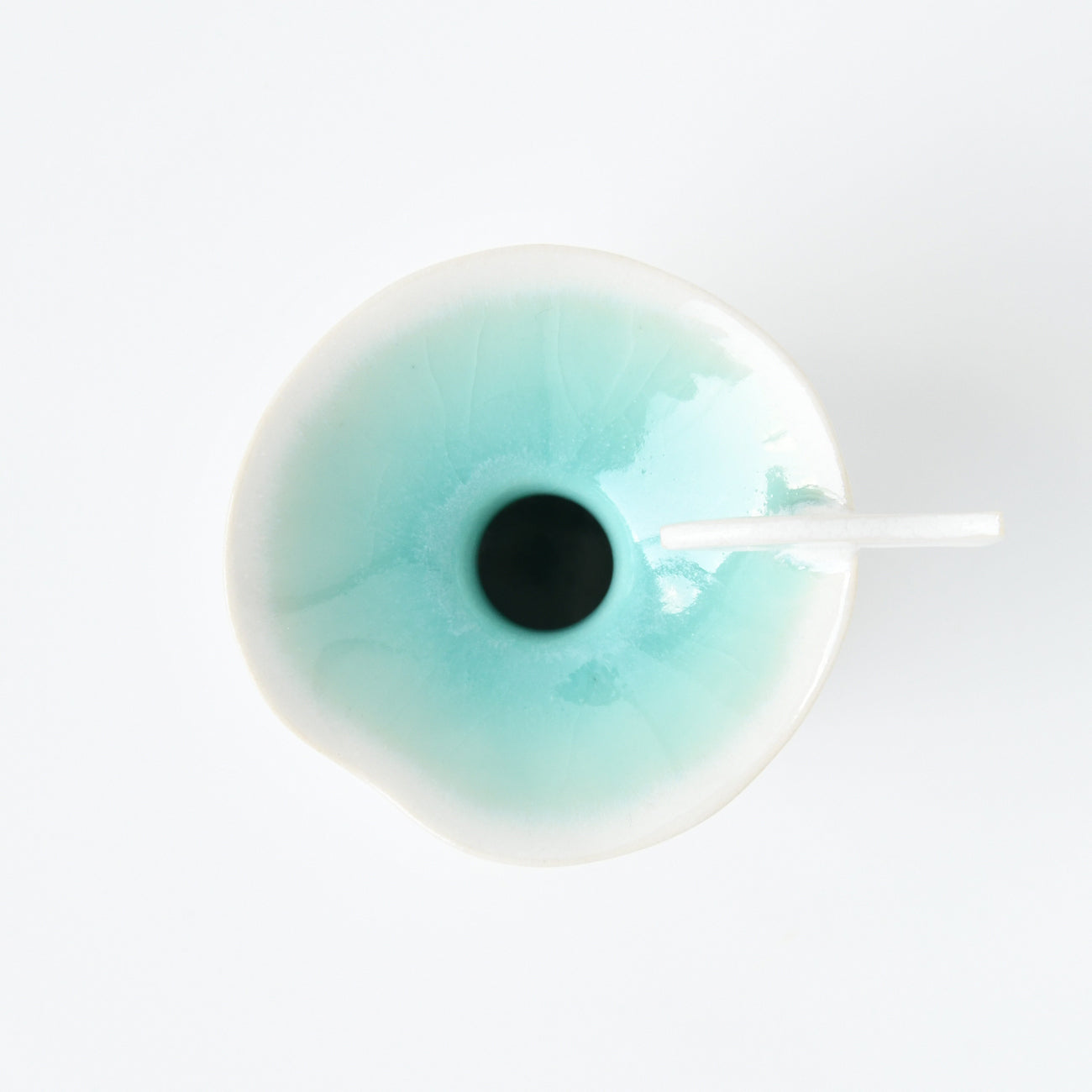 食卓や窓辺でちょこんと置いて頂けるサイズ。少し重さをつけて作られていますので枝物や