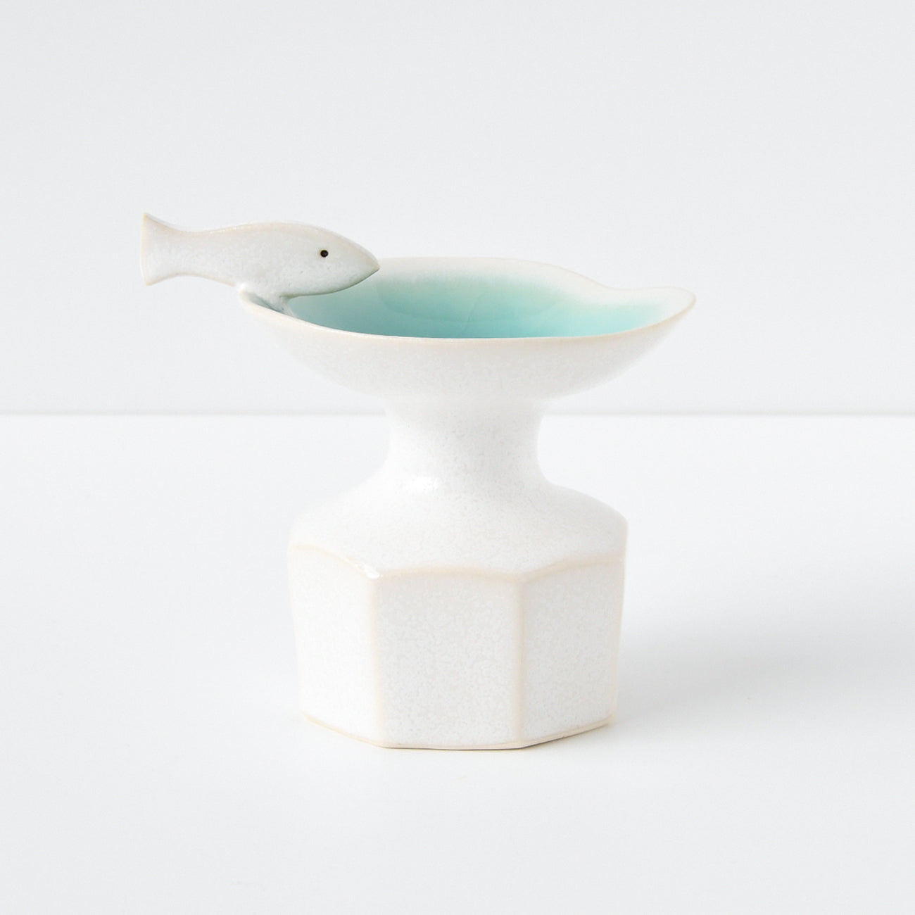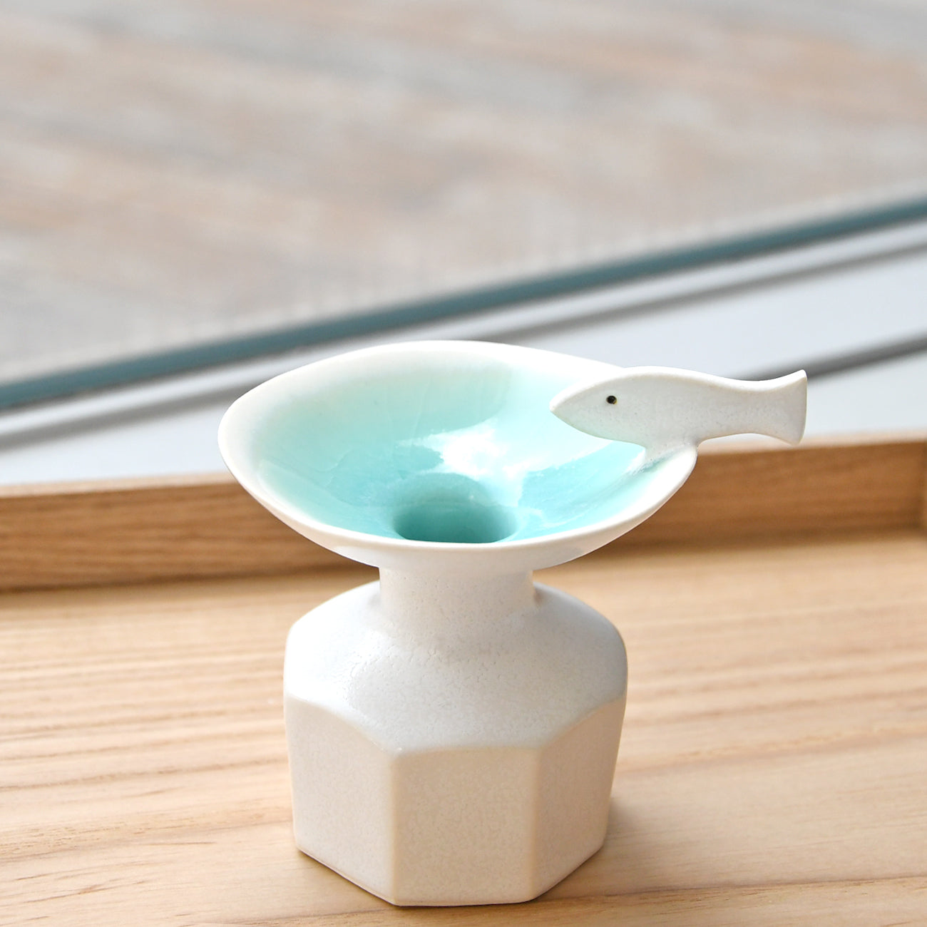 さかなの下まで水を入れて水面も楽しめる花器です。