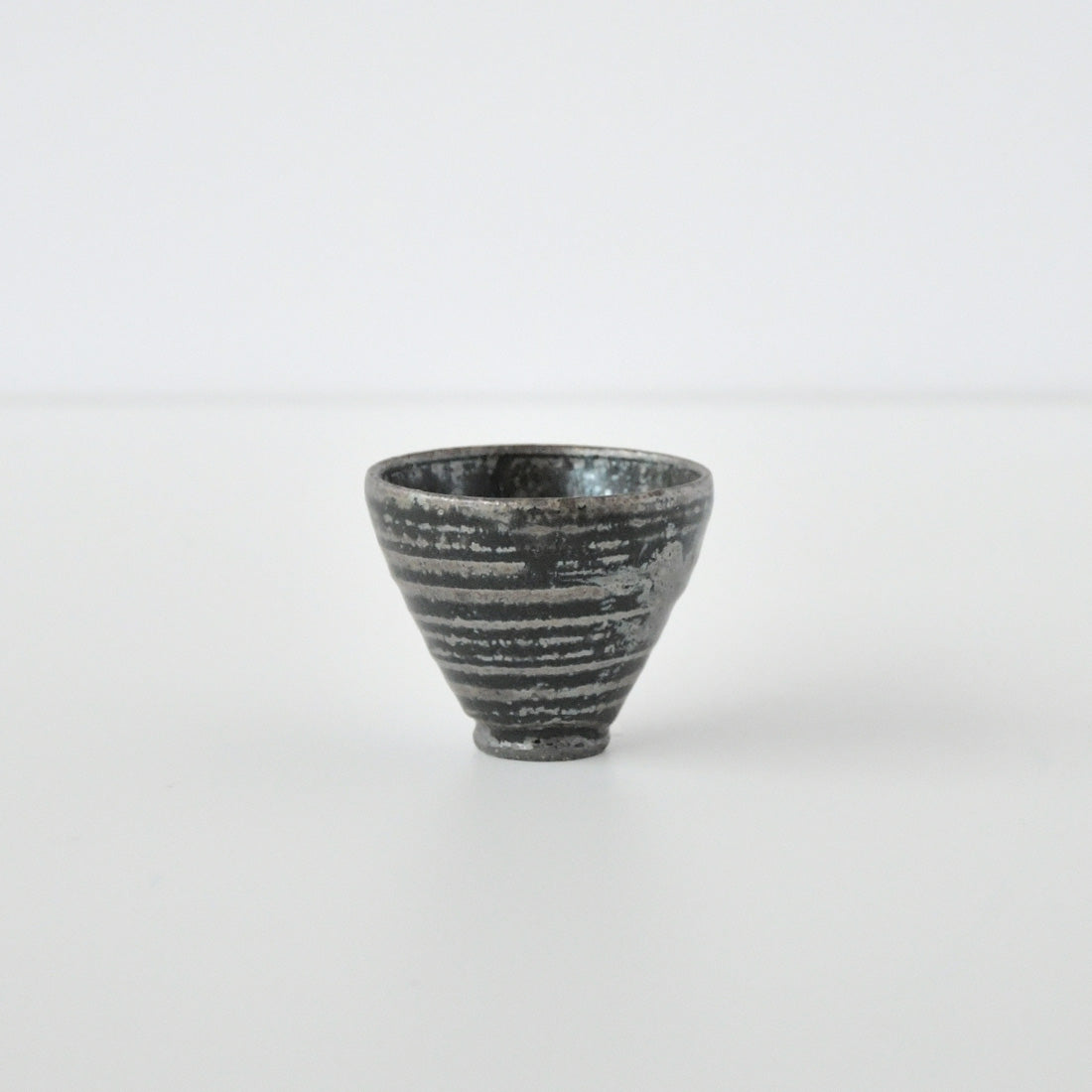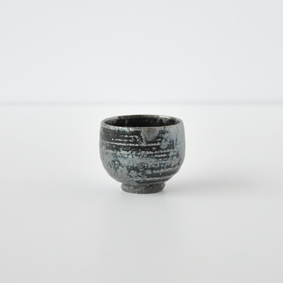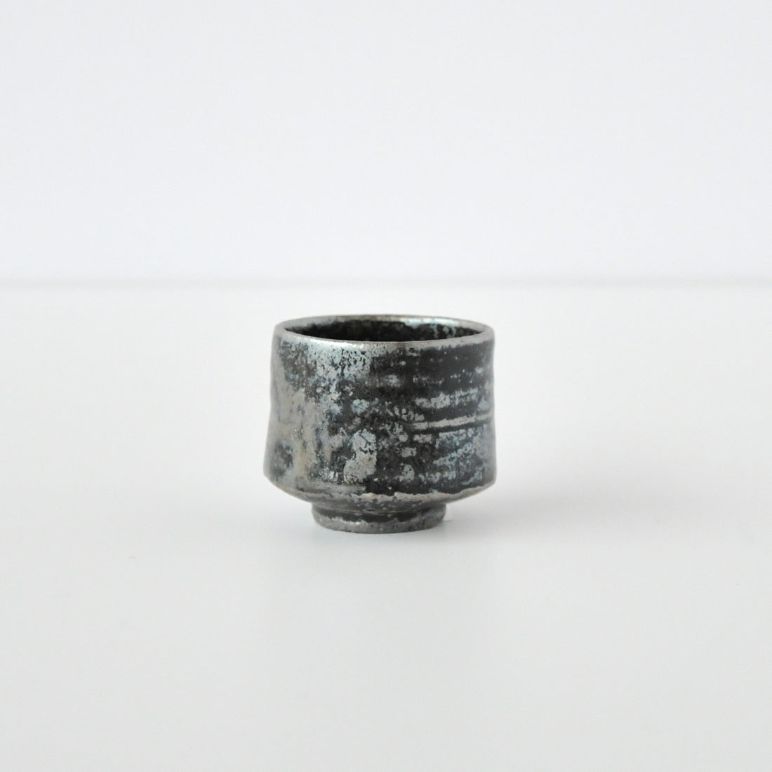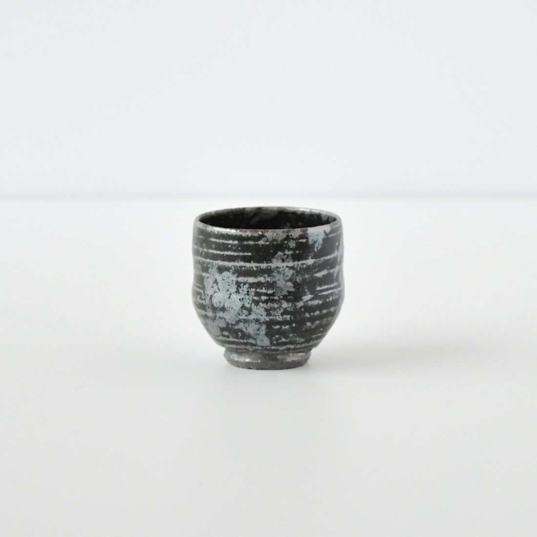 鉄を使った黒色と銀色に発色する2種類の釉薬を使用し、黒色の中にキラキラ光る景色が素敵です。