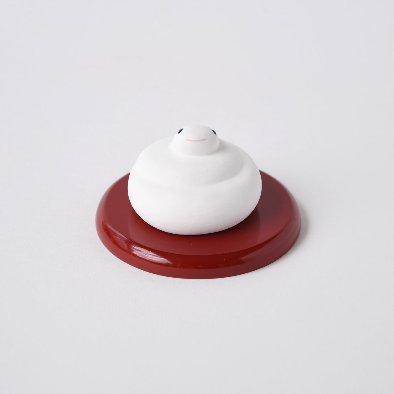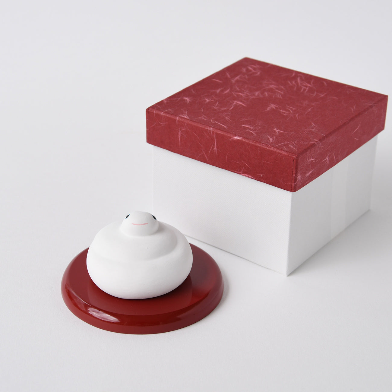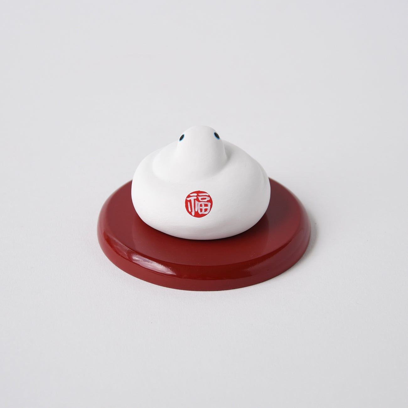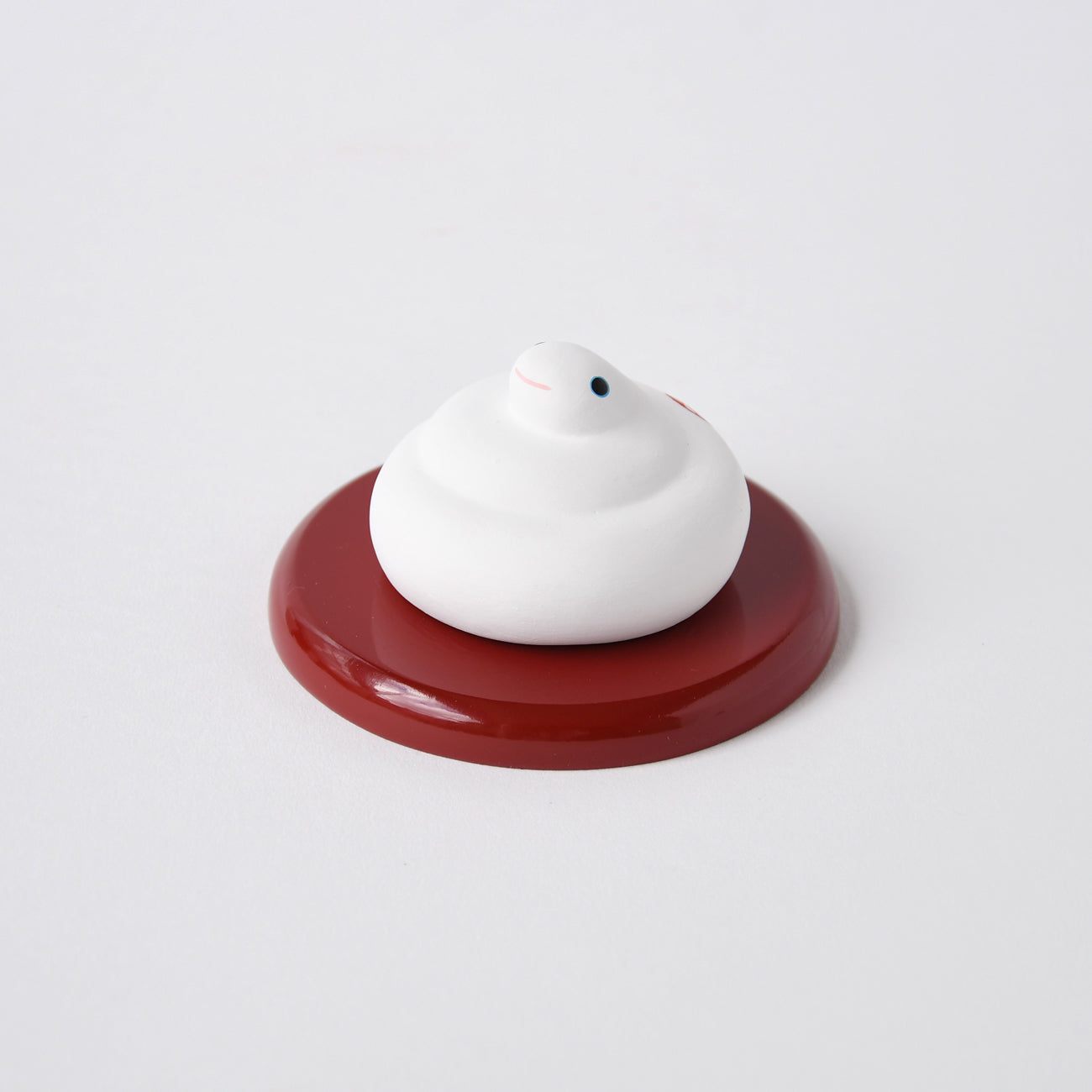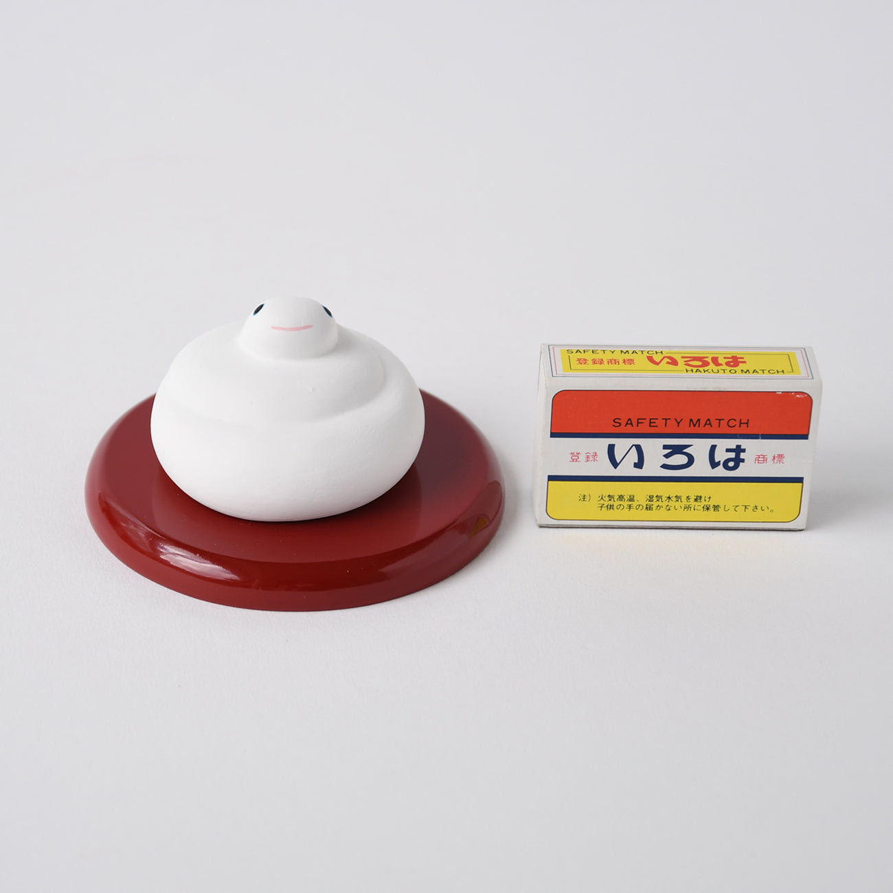 小田益の干支の人形は粘土の鋳込み技法で素焼き焼成。神の使いと云われる真っ白な蛇。お鏡さんのようでもありますね。