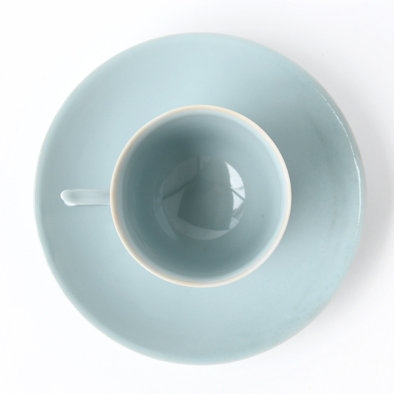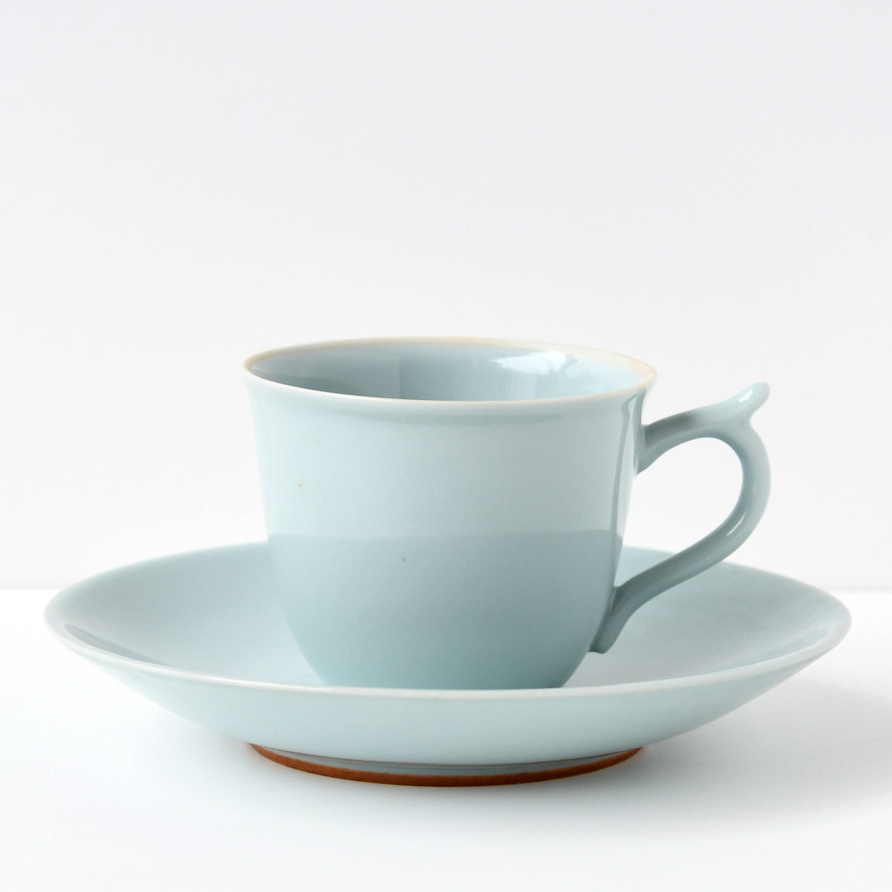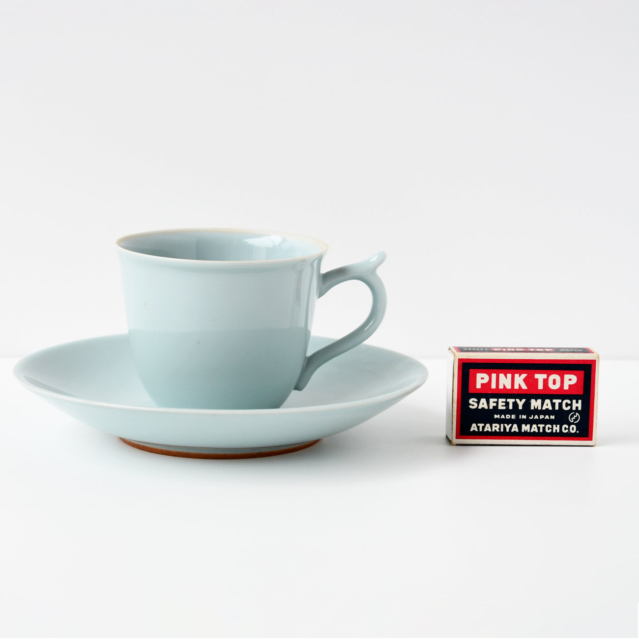 画像ではカップの下部に影がみられますが、実際は濃淡のない一面綺麗な青磁色です。