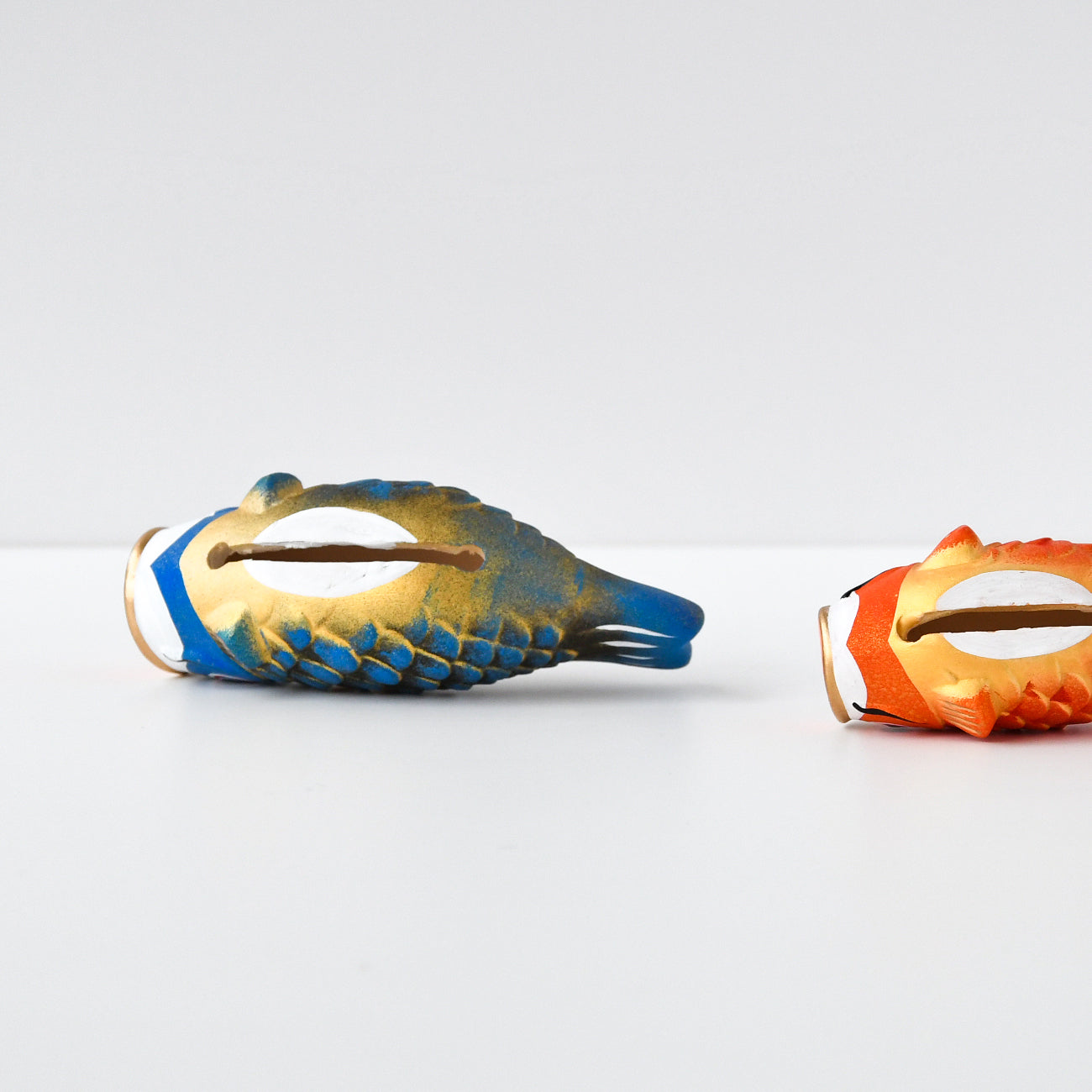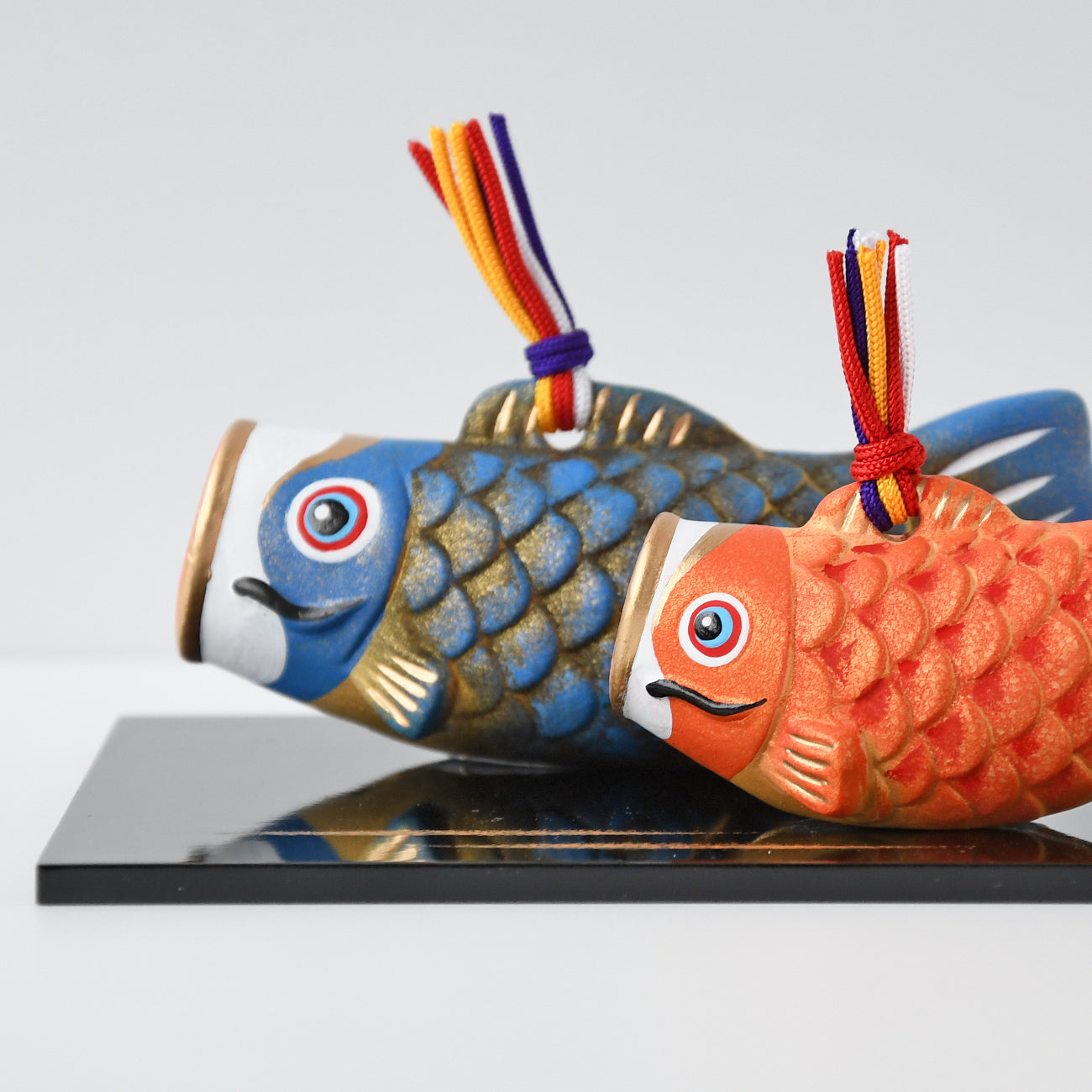 爽やかな五月の空を泳ぐ鯉のぼりをモチーフにした土鈴の置物です。