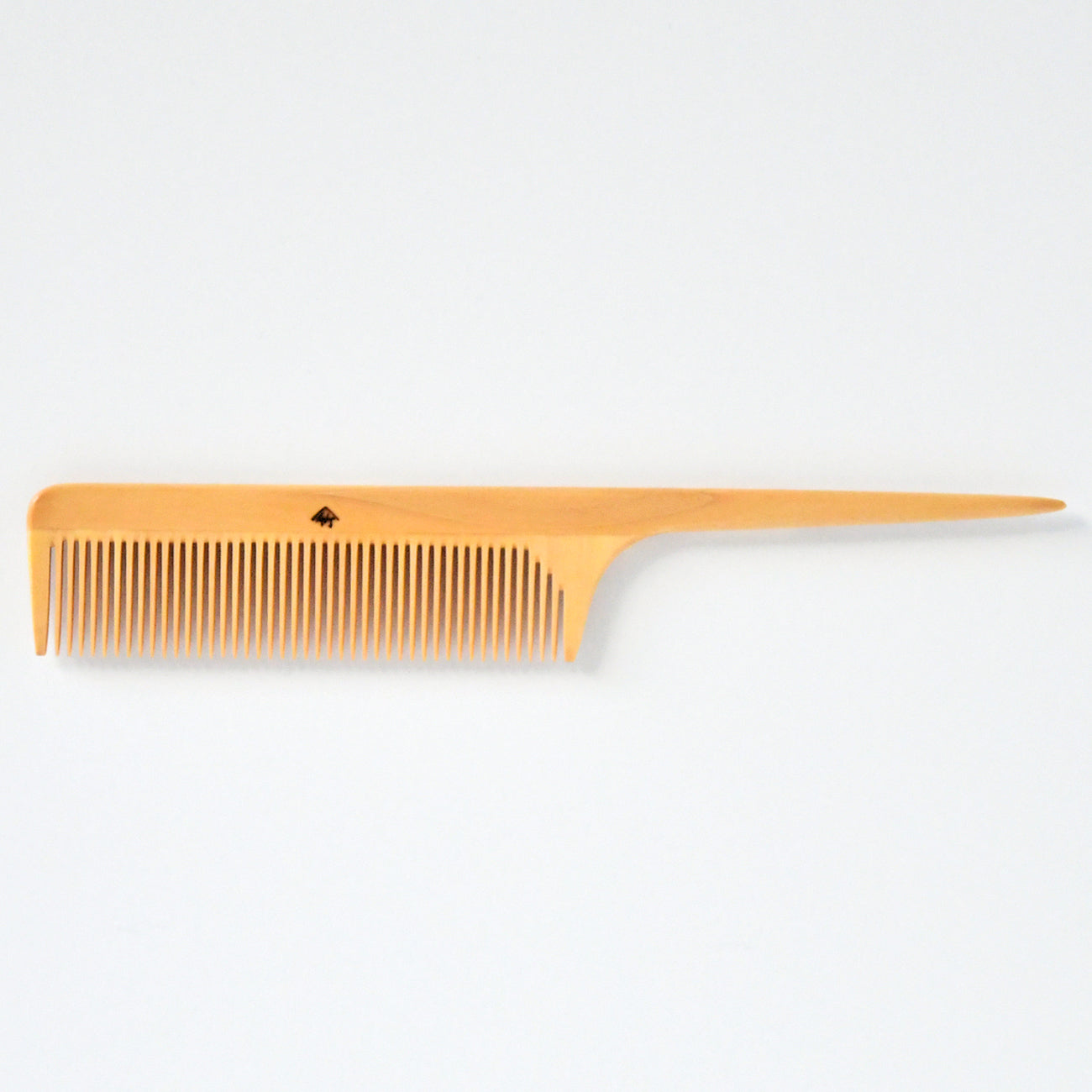 国産さつまつげ材を、10年以上寝かせてから丁寧に加工仕上げした、仕上げ(髪のセット)用のつげ櫛です。