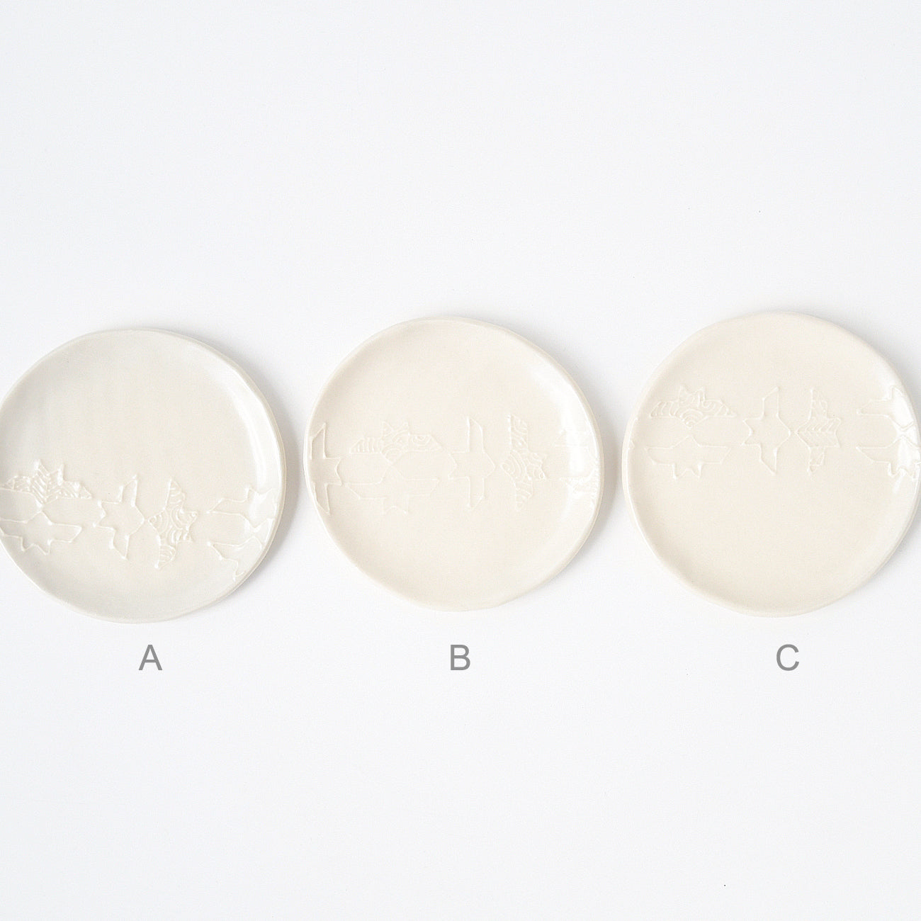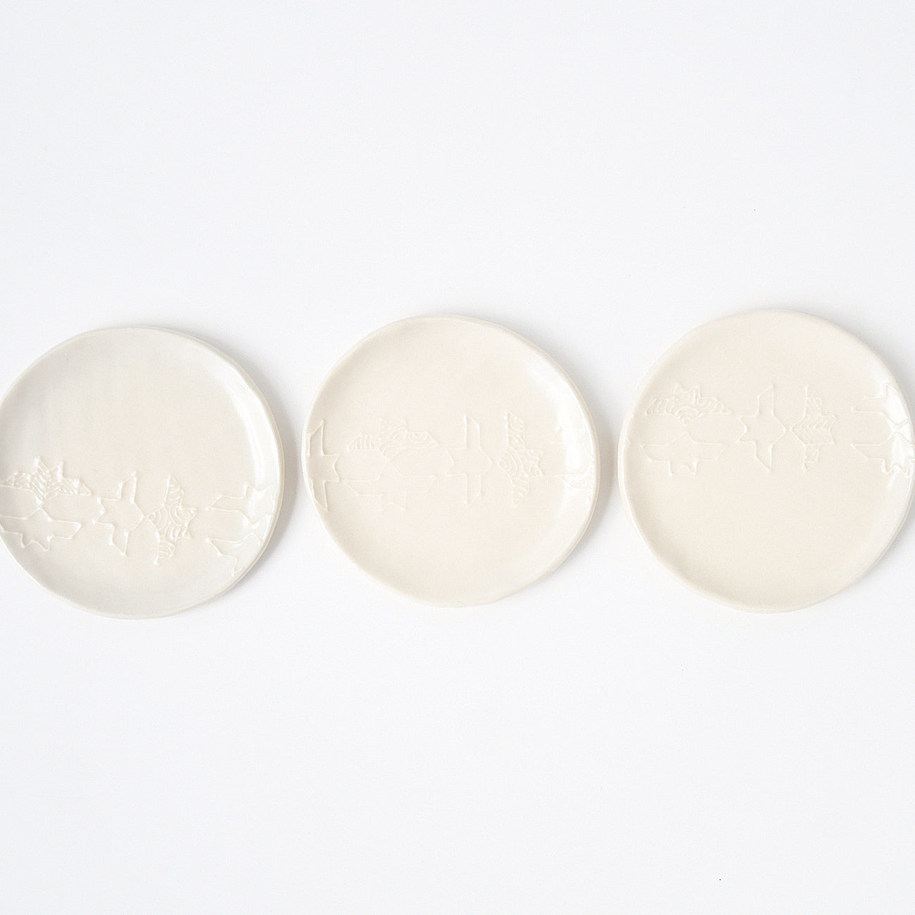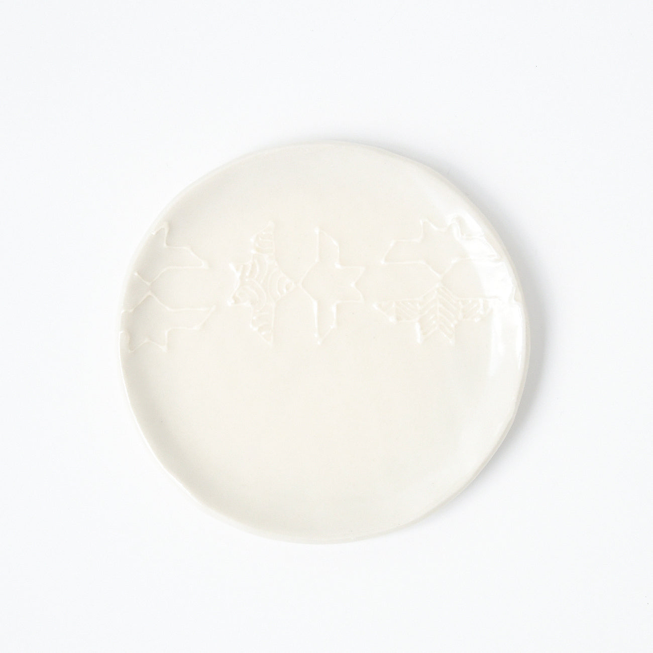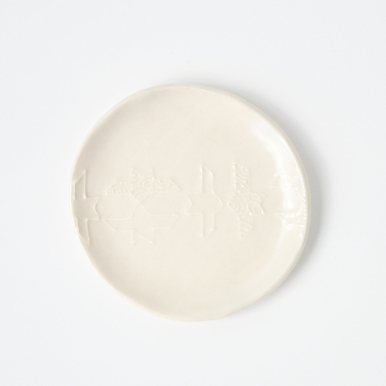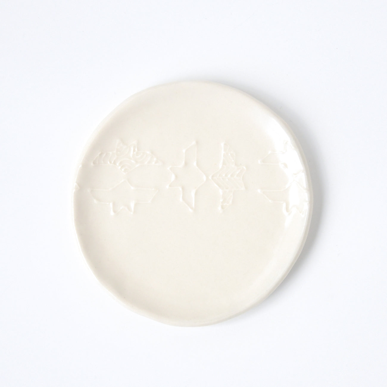 イッチンで幾何学模様やペーズリー模様を描いた小皿