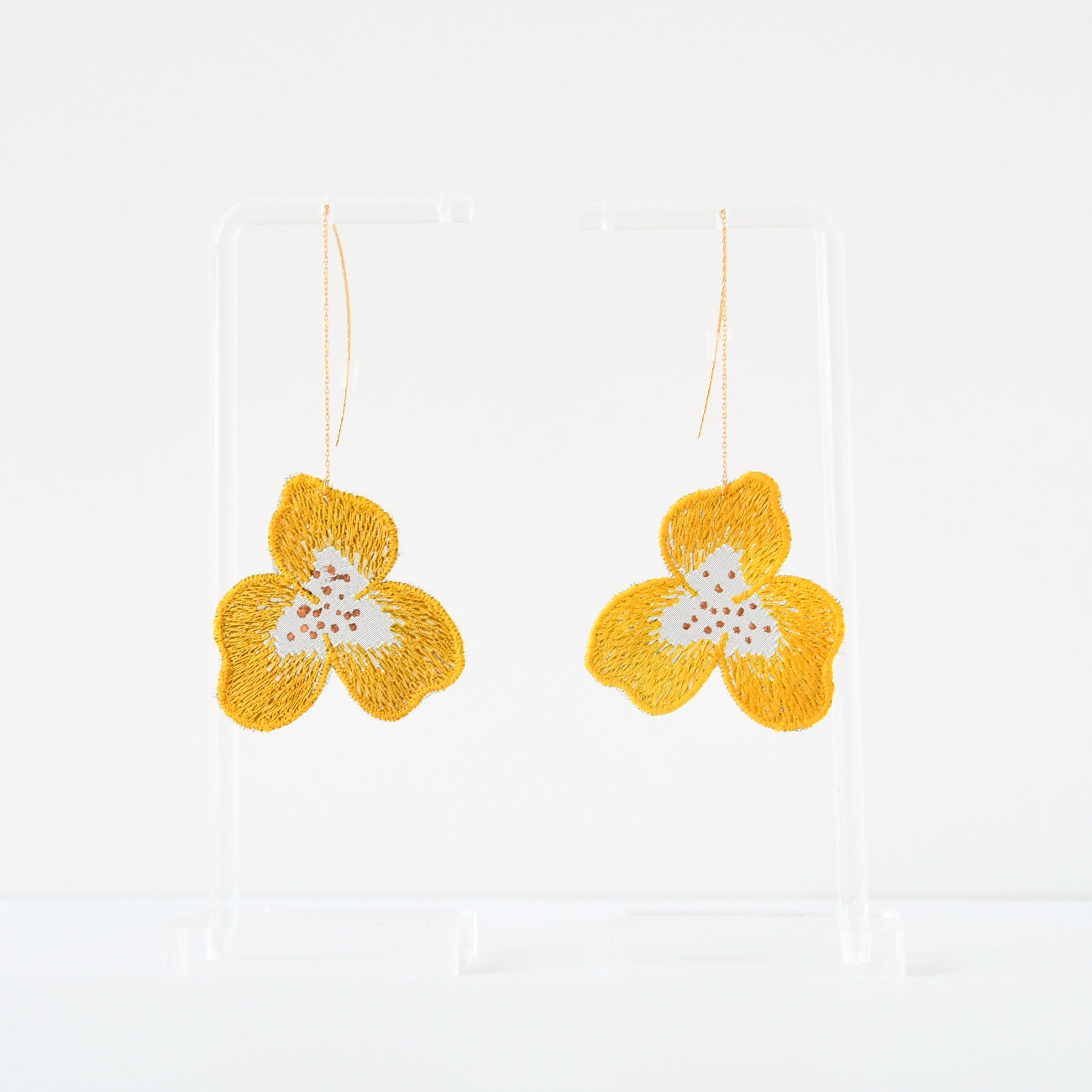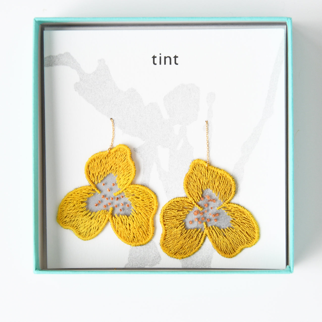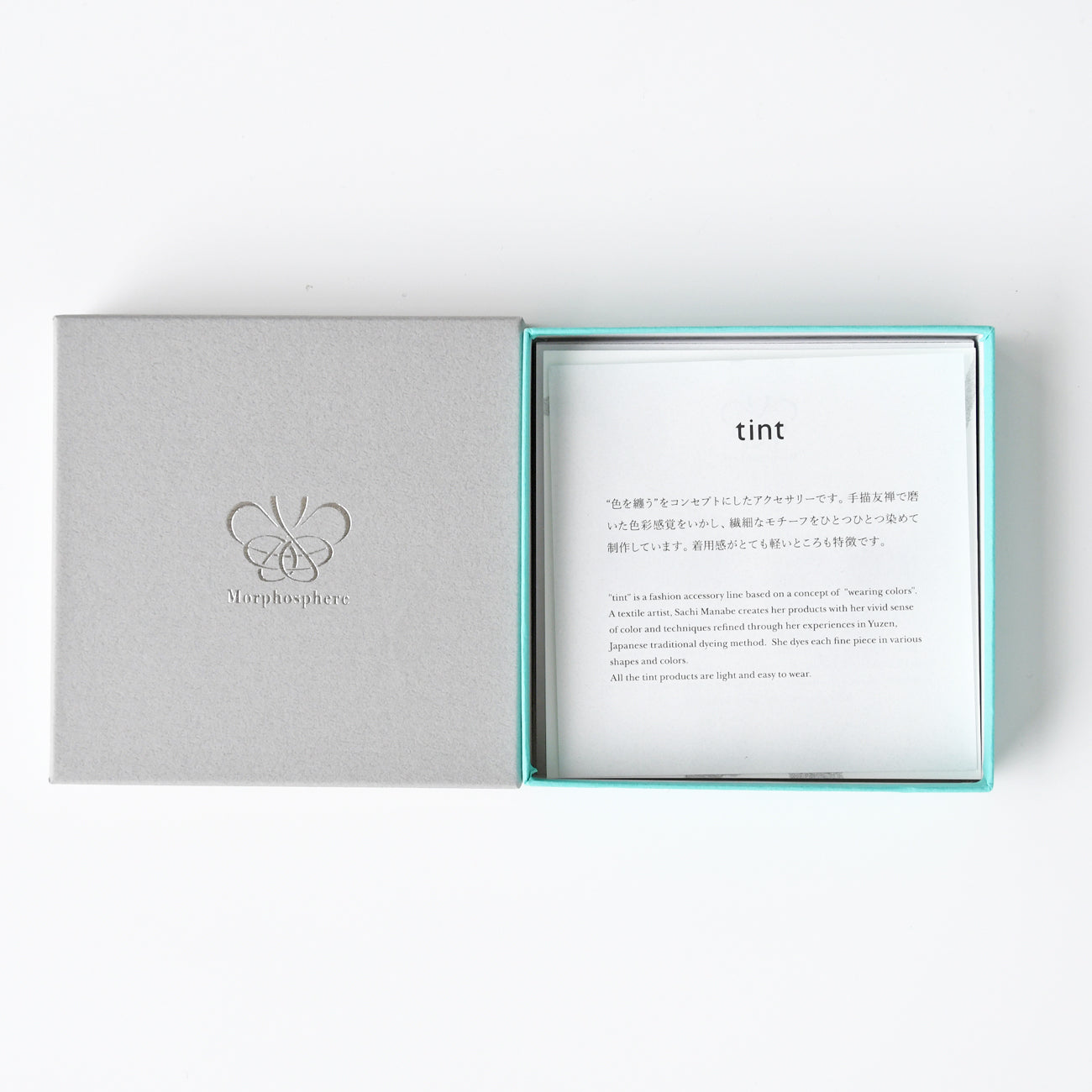 オリジナルの刺繍レースを、手描友禅で磨いた色彩感覚でひとつずつ染めて制作しています。空の色や花の色、風、温度、スイーツ、、様々なモノからインスピレーションを受け、色にアウトプットして染める色は繊細で色相の幅もとても豊か。あなただけのお気に入りの色をみつけてください。着用感がとても軽いところも特徴です。