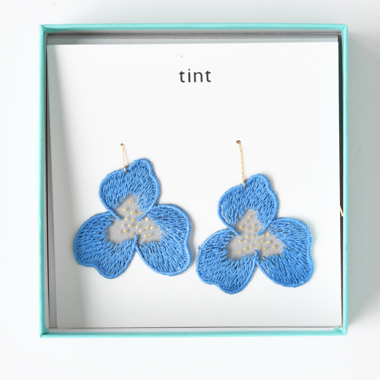オリジナルの刺繍レースを、手描友禅で磨いた色彩感覚でひとつずつ染めて制作しています。空の色や花の色、風、温度、スイーツ、、様々なモノからインスピレーションを受け、色にアウトプットして染める色は繊細で色相の幅もとても豊か。あなただけのお気に入りの色をみつけてください。着用感がとても軽いところも特徴です。