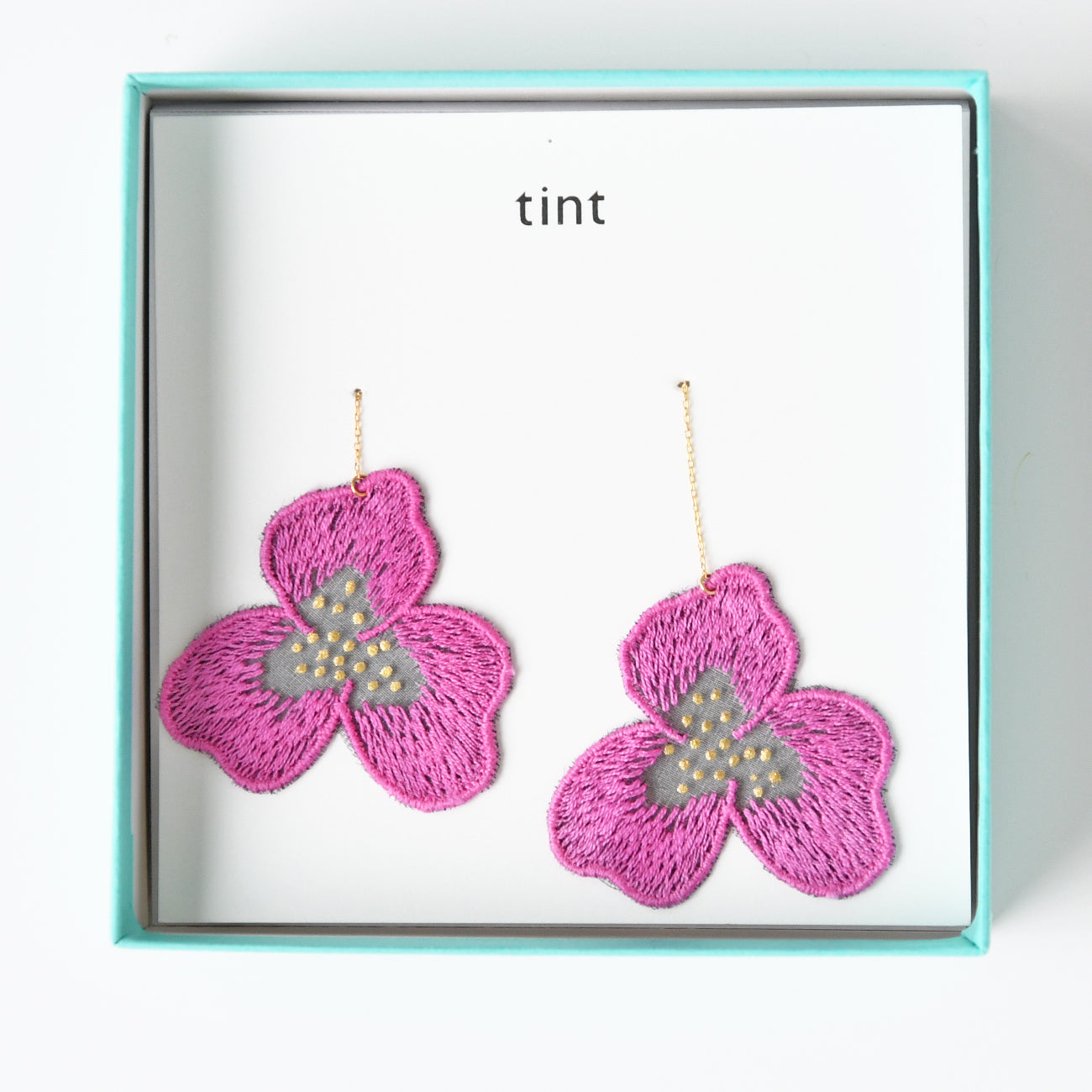 オリジナルの刺繍レースを、手描友禅で磨いた色彩感覚でひとつずつ染めて制作しています。空の色や花の色、風、温度、スイーツ、、様々なモノからインスピレーションを受け、色にアウトプットして染める色は繊細で色相の幅もとても豊か。あなただけのお気に入りの色をみつけてください。着用感がとても軽いところも特徴です。