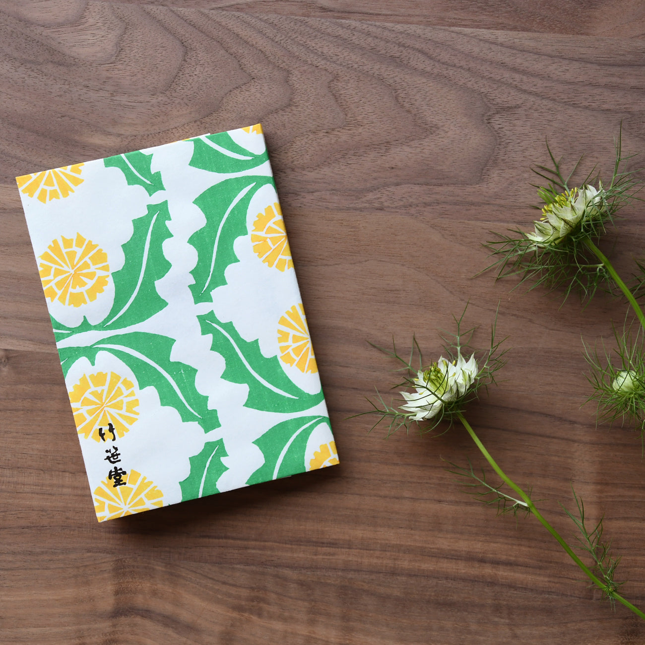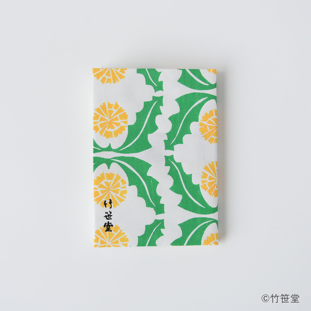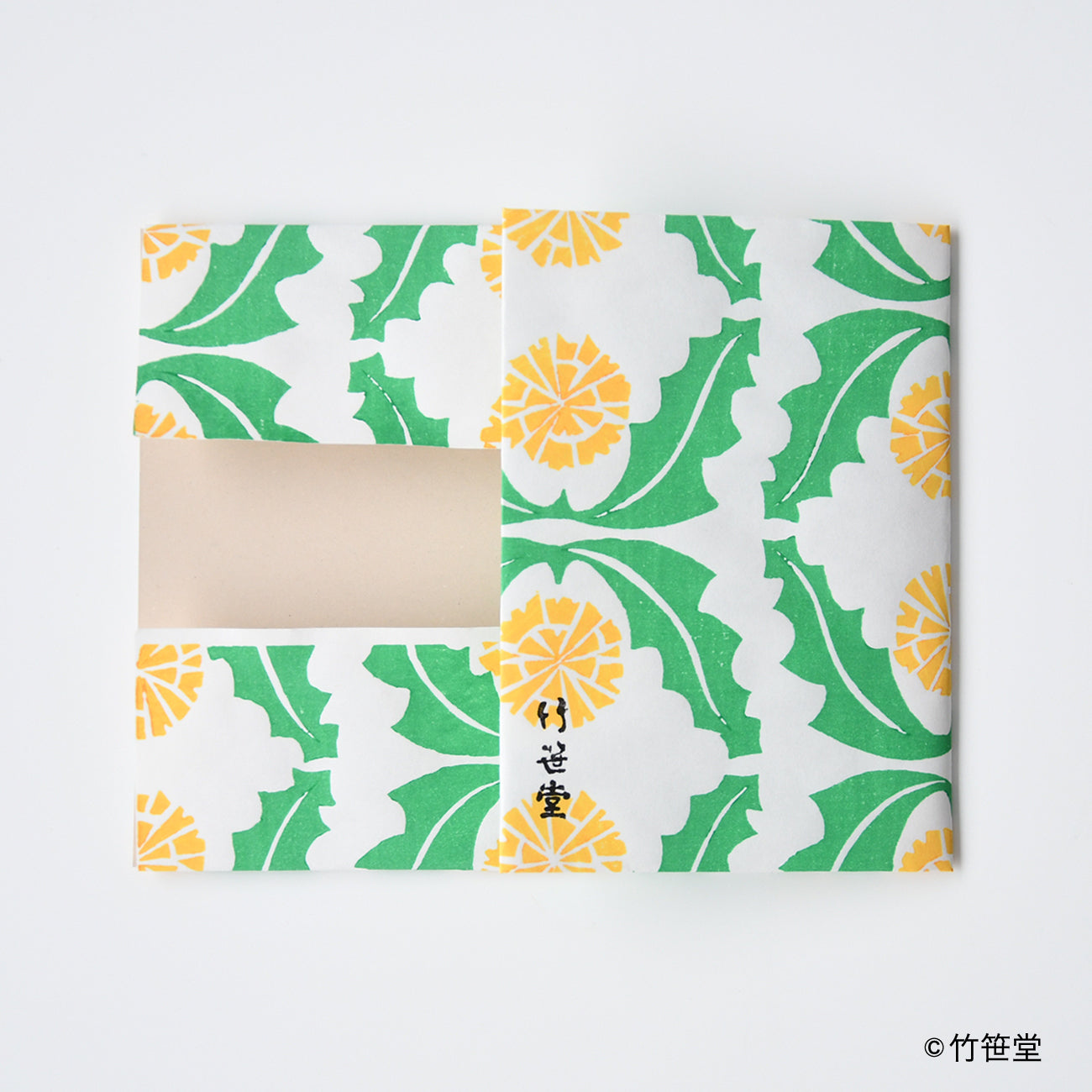 大地に根を張り大きな葉を広げ、たくましく育っていくタンポポ。黄色と緑のコントラストが鮮やかに色を放つデザイン。