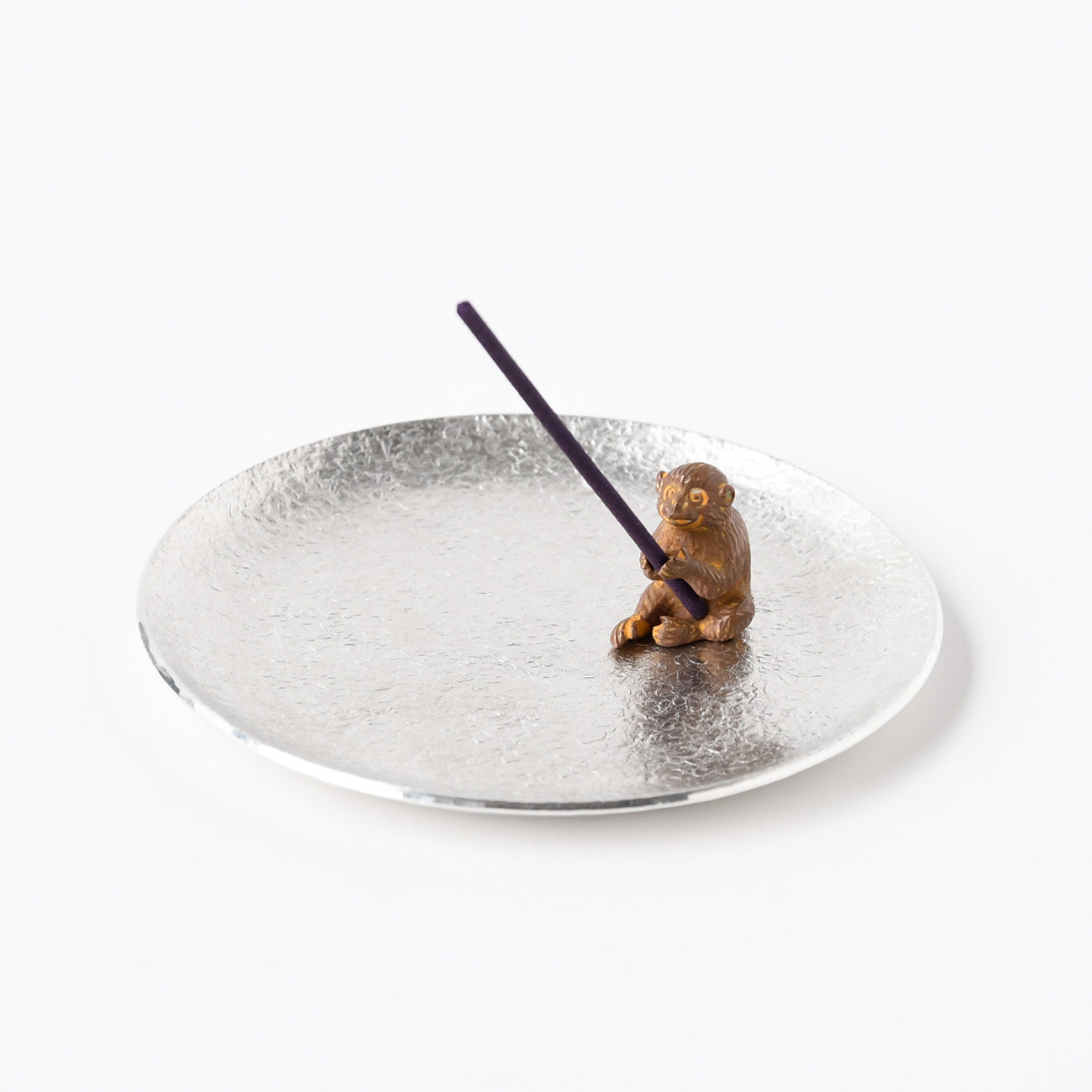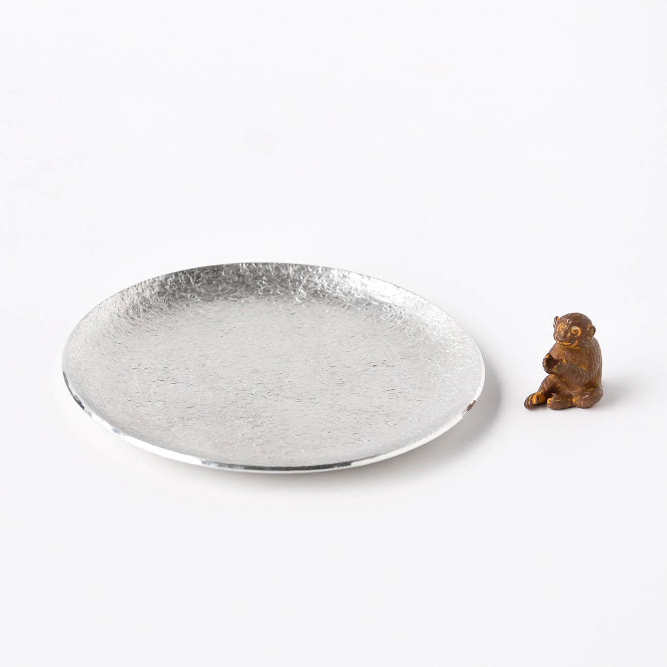 猿 古美色仕上げ、錫皿 石目(ざらざらとした肌)