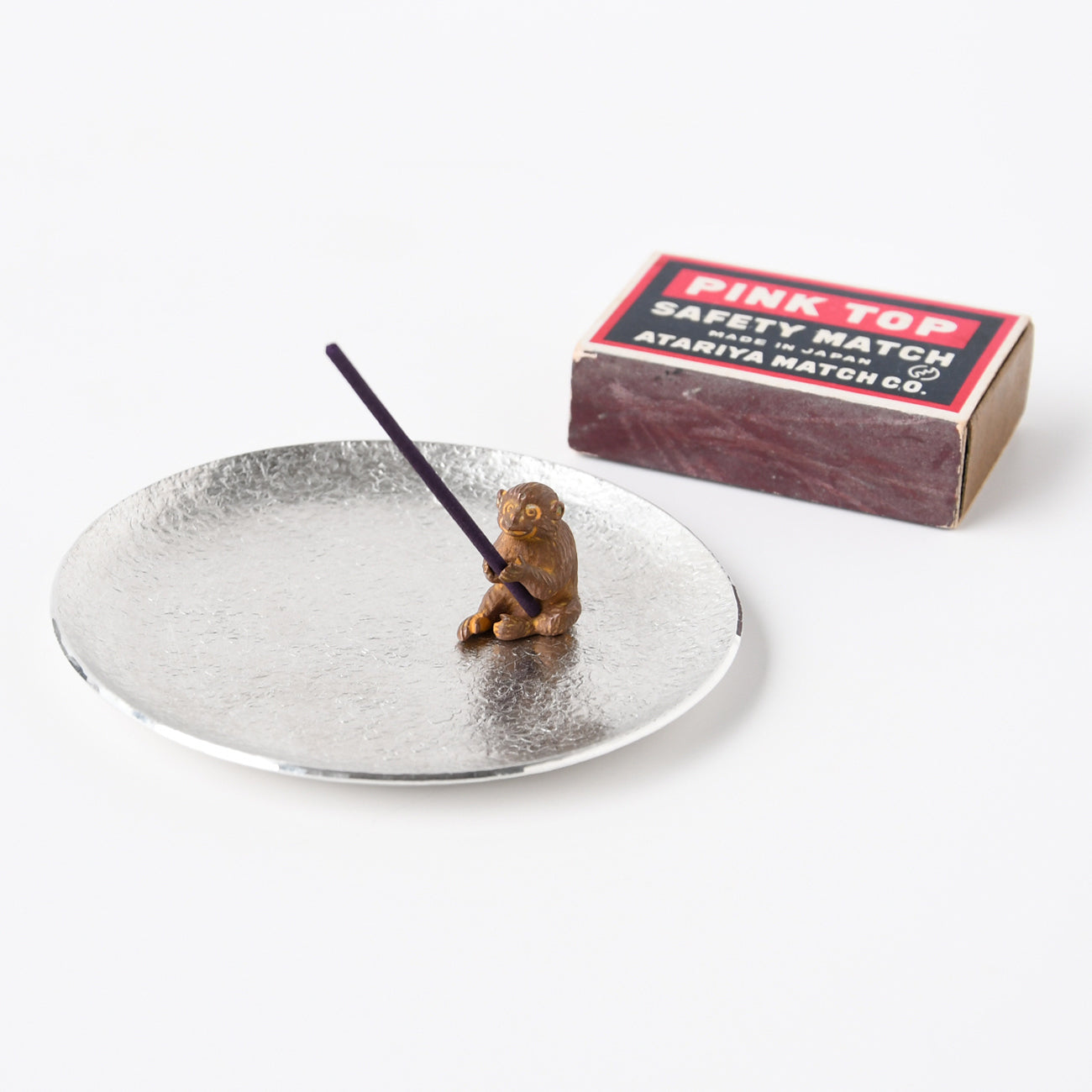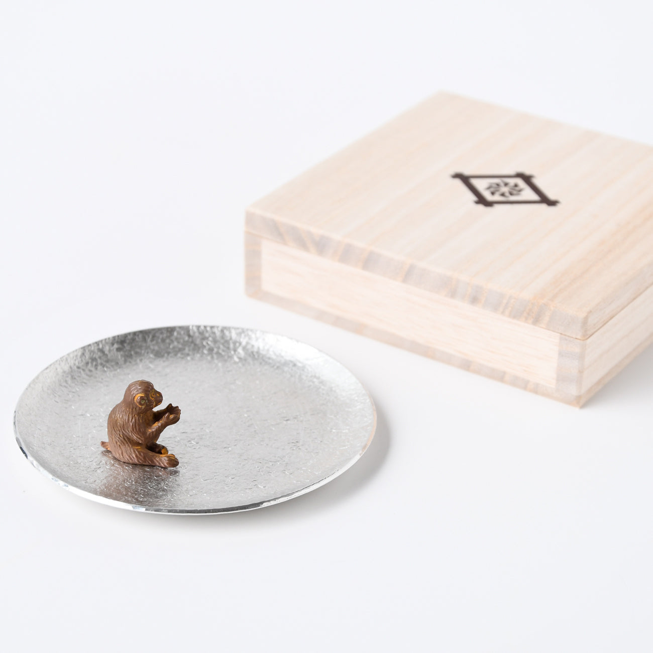 猿 w20×d13×h21(mm) 10g、錫皿 φ91×h7(mm)w15×d10×h20(mm) 70g