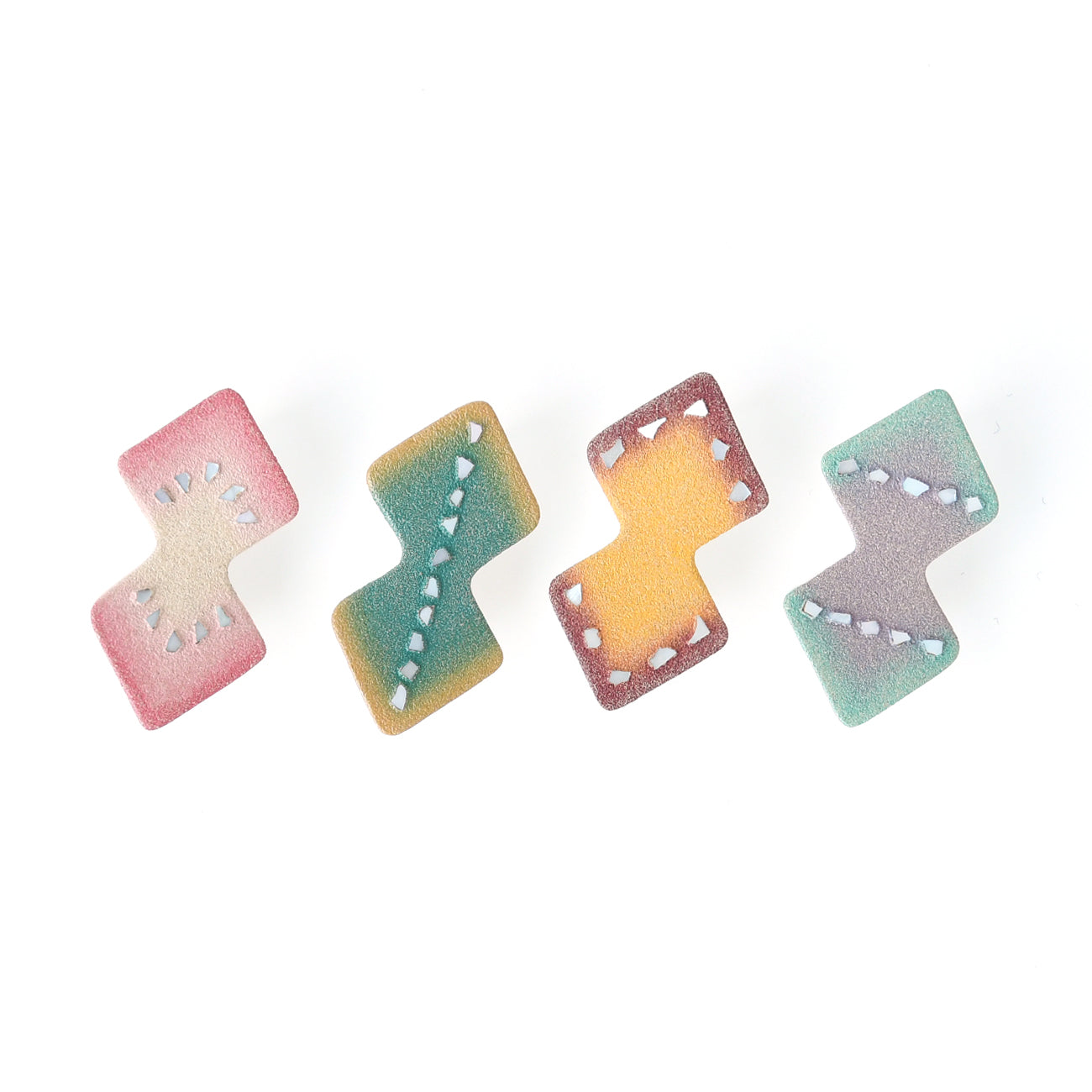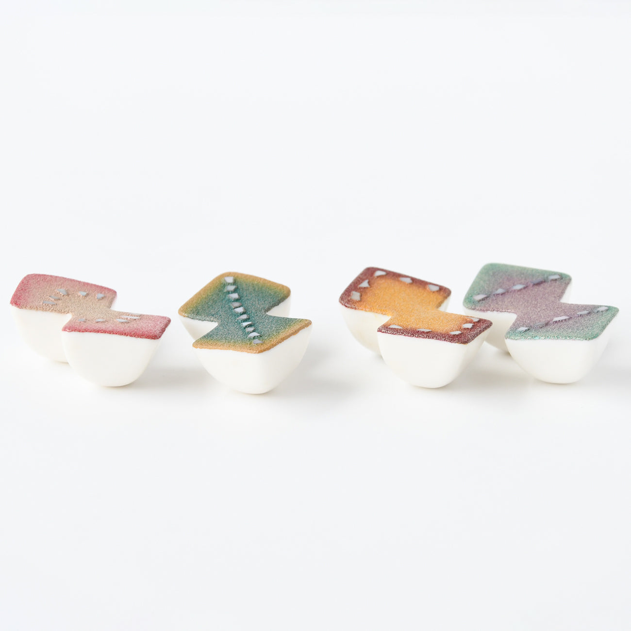 蝶々をイメージした箸置きで、色漆と貝で蝶の柄を表現しました。 裏が丸くゆらゆらと揺れます。ひらひら舞う蝶が羽を休めるように、お箸を置くと揺れは止まります。