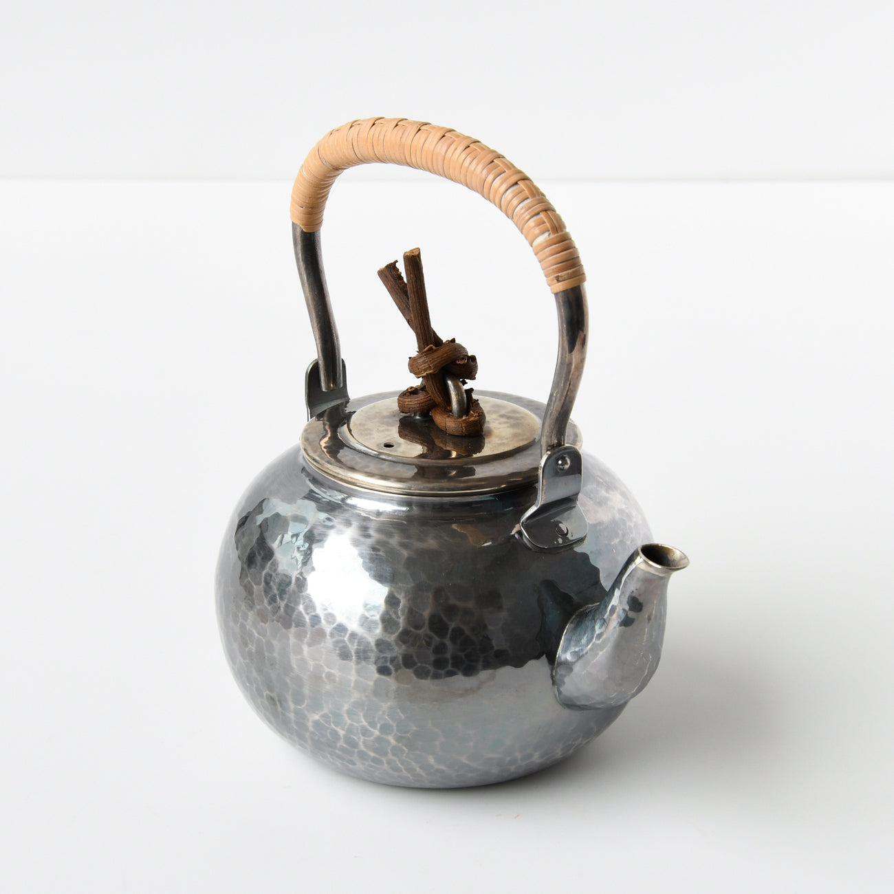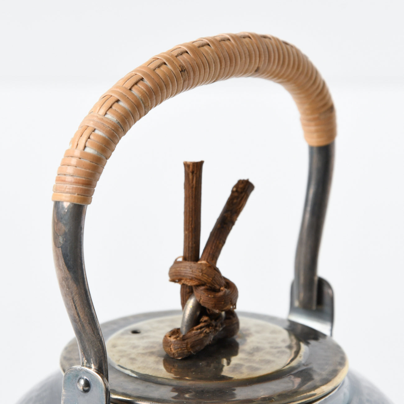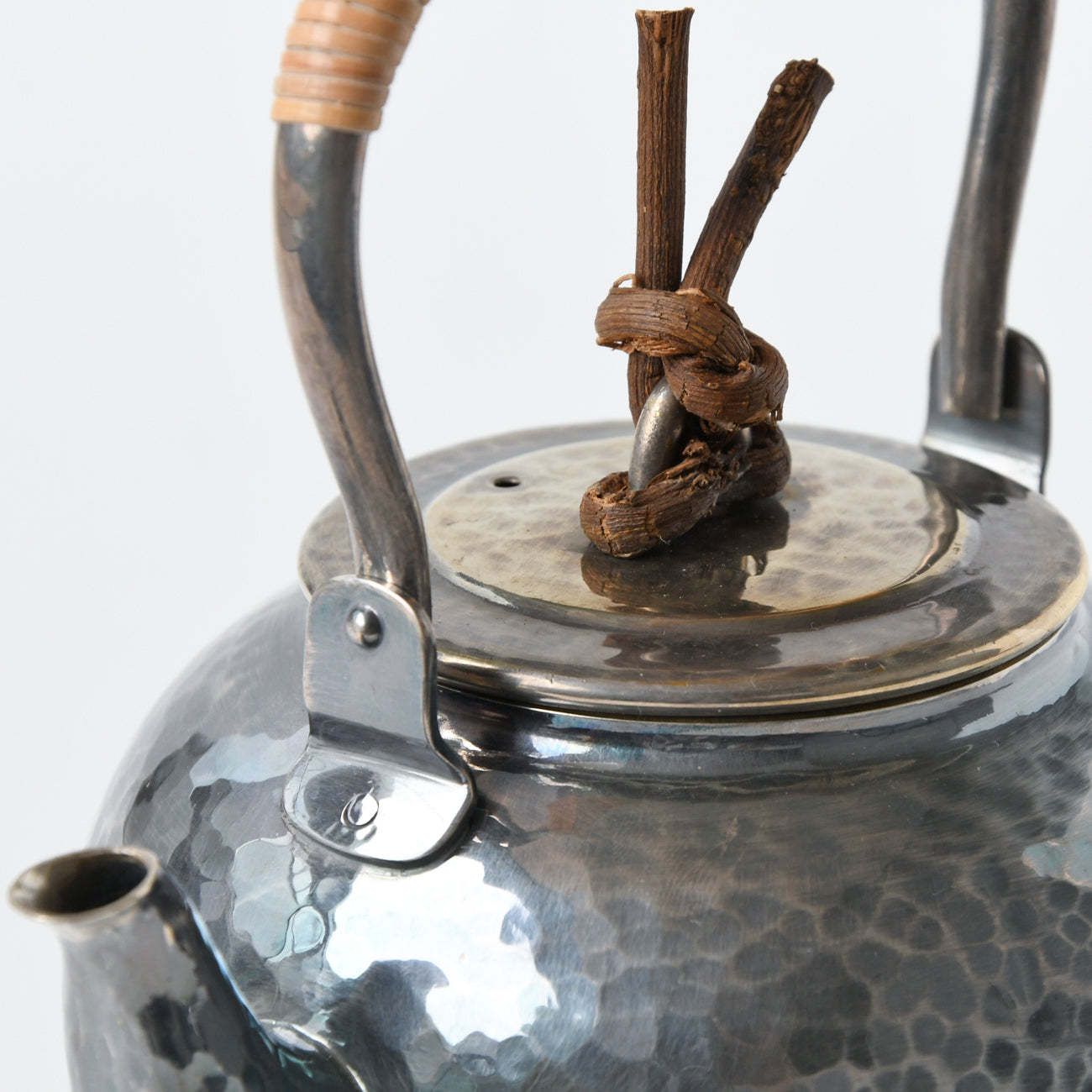 質感は、黄銅の丸鎚目の上に銀メッキ(鍍銀)の燻し仕上げです。