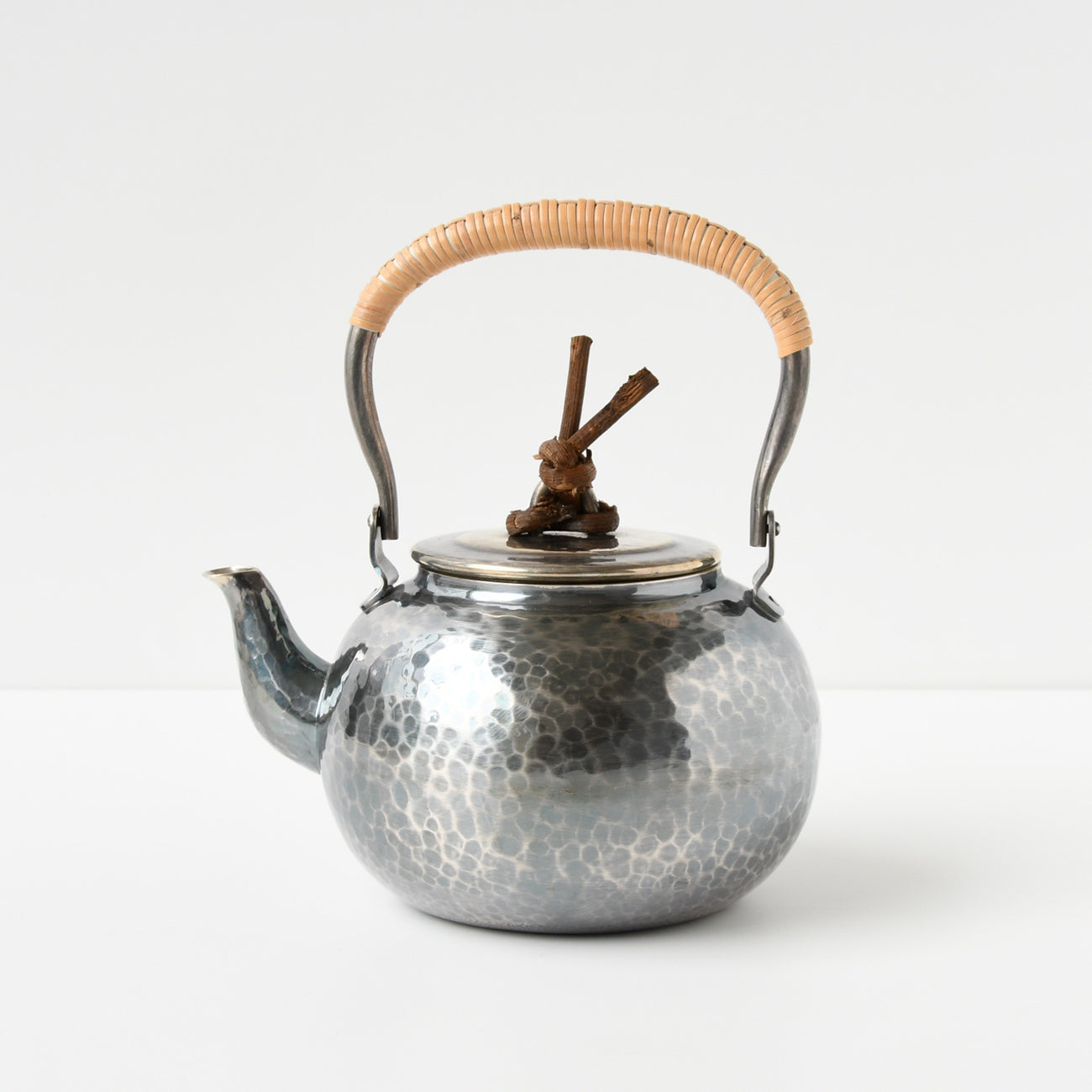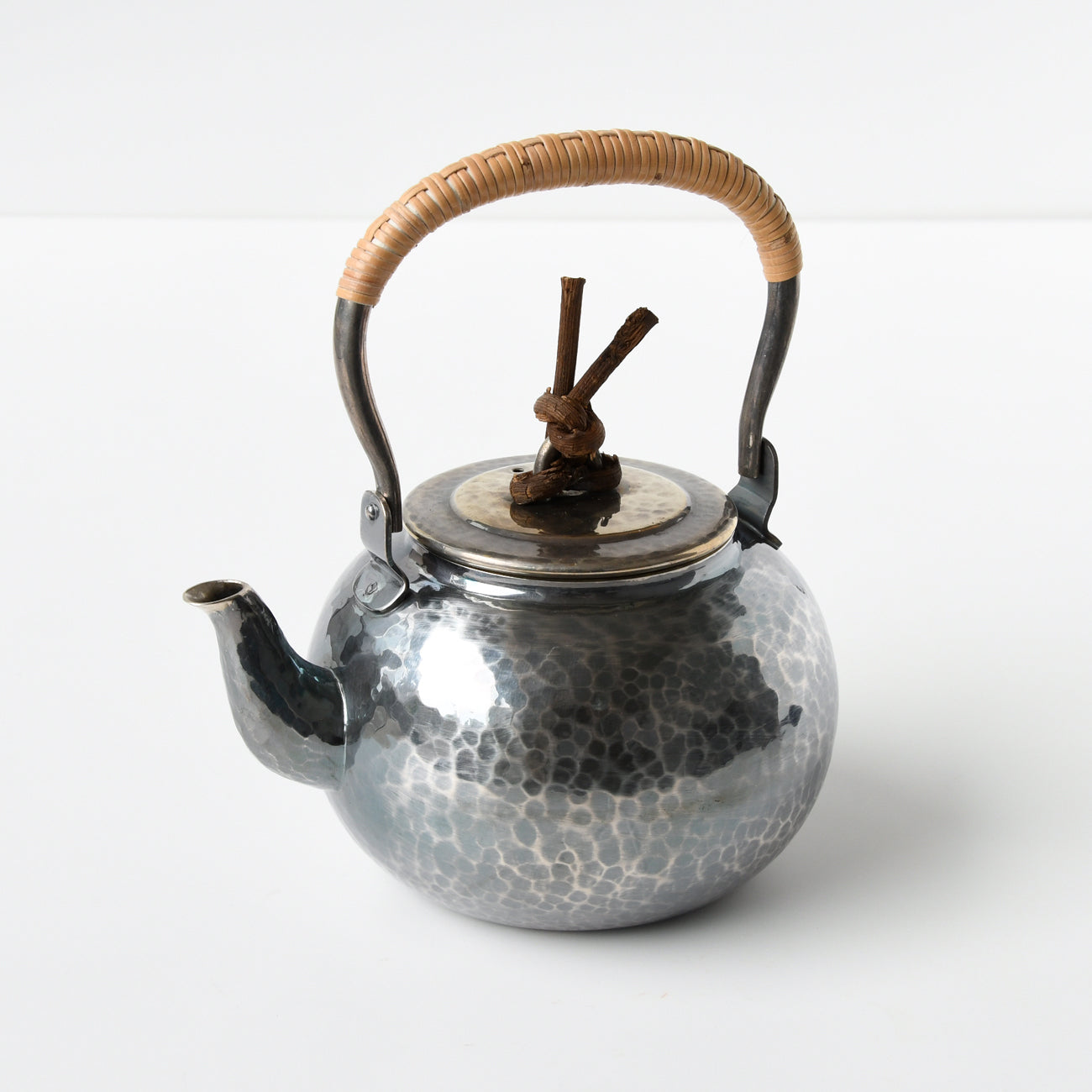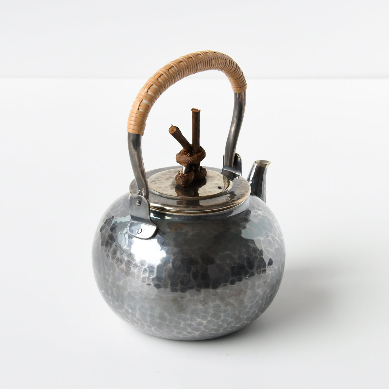 質感は、黄銅の丸鎚目の上に銀メッキ(鍍銀)の燻し仕上げです。