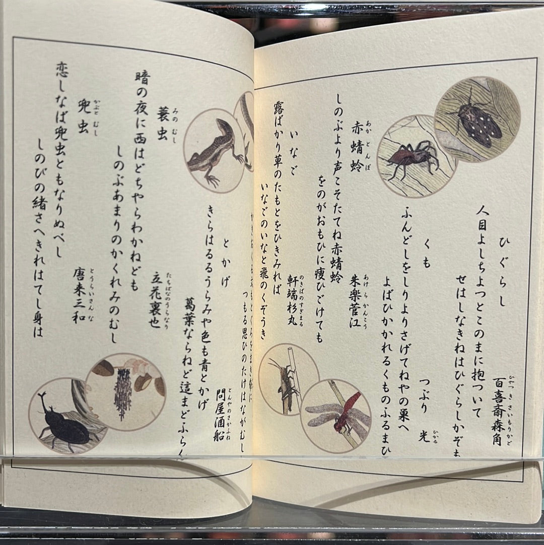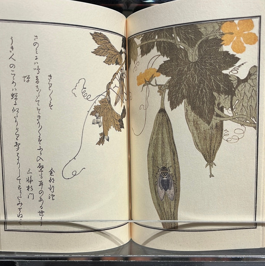 江戸の狂歌師が虫に託して詠んだ30種に美人画の名手・歌麿が草虫図を添えた風流な絵本を豆本に復刻。