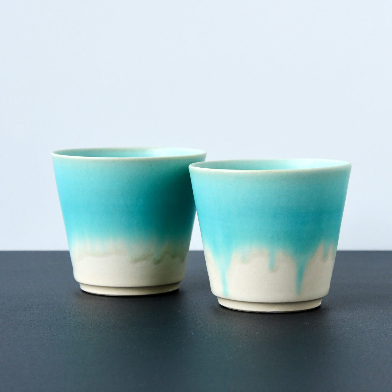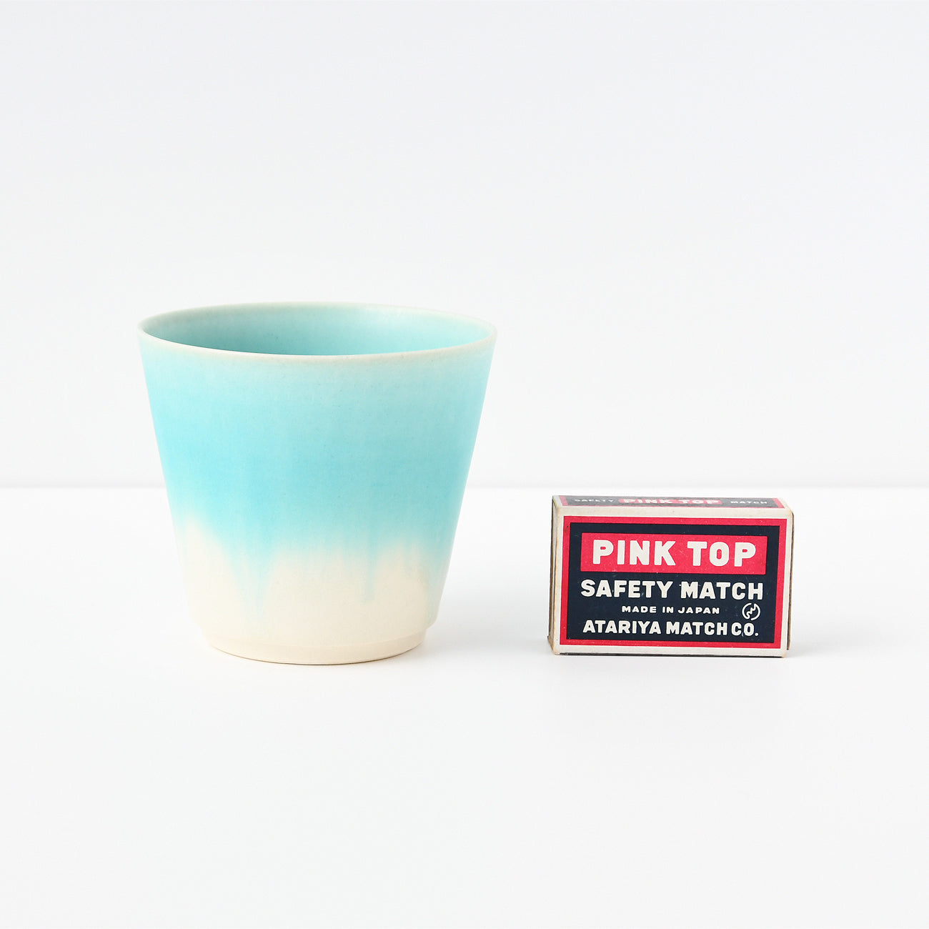 トルコ色と白の釉薬を掛け合わせた柔らかな青色のイメージで制作され