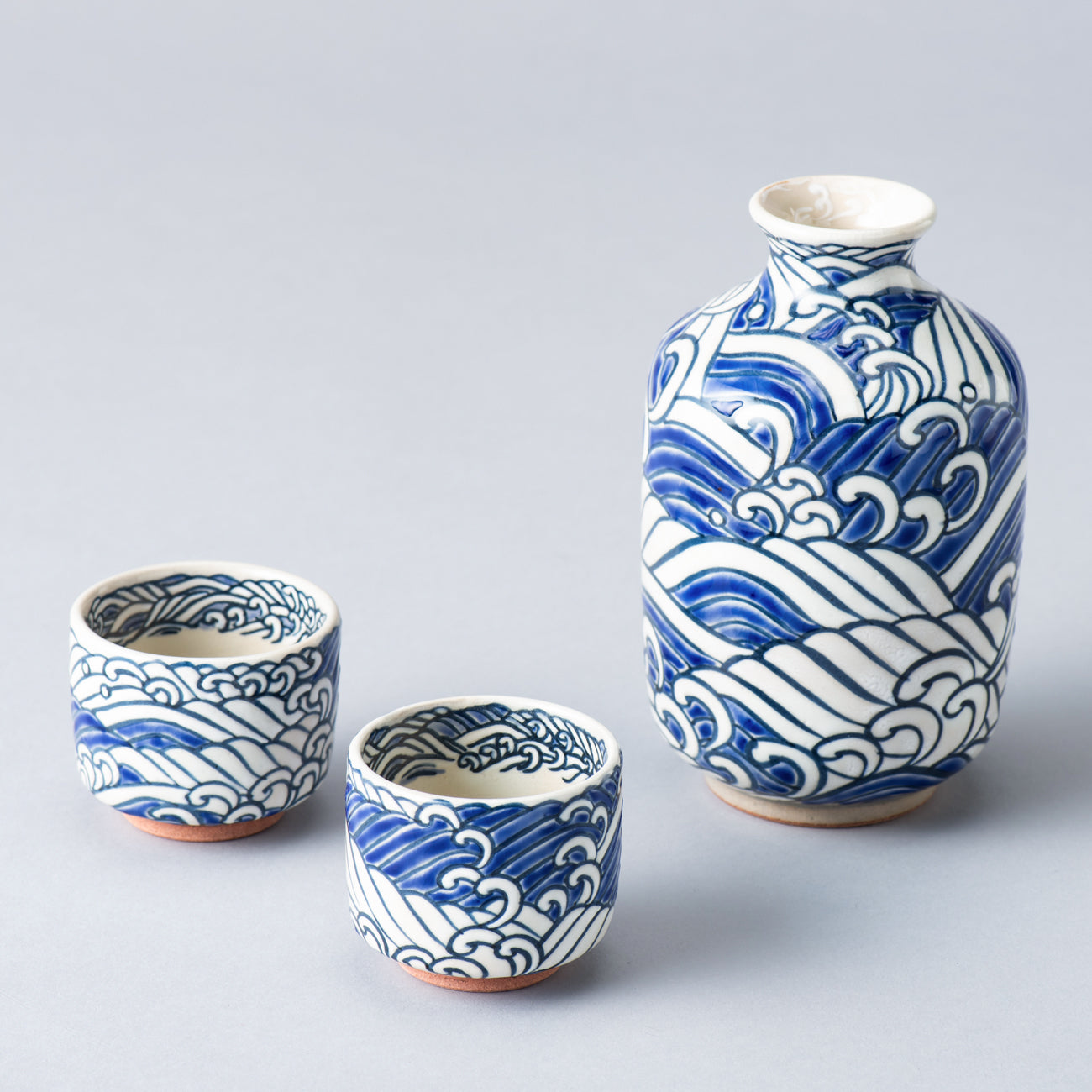 光琳の影響を受けたであろう大胆な構図の波を酒器に。