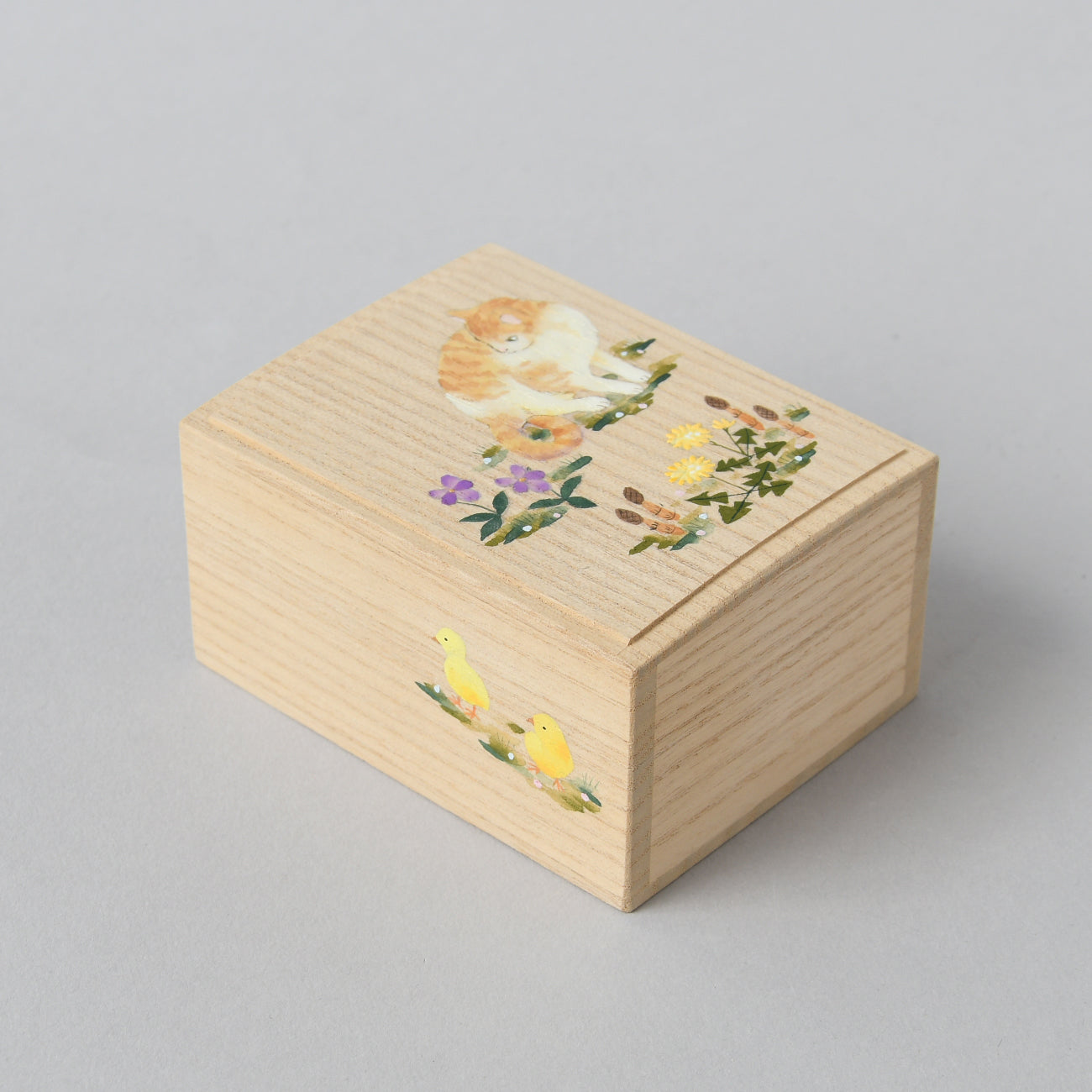 この桐箱は、日本画絵師により描かれた逸品です。桐箱を水に濡らしたり、湿った手で触りますと絵がにじんだり、桐箱の表面にあとかたが残る場合がありますのでご注意くださいませ。また、高温多湿の場所での保管は避けてください。