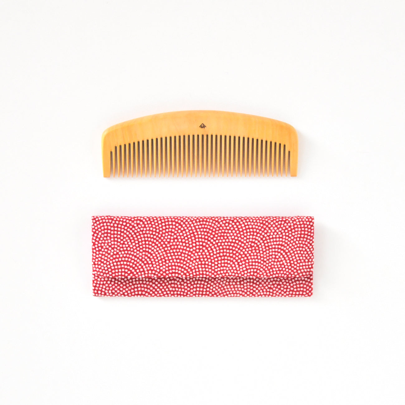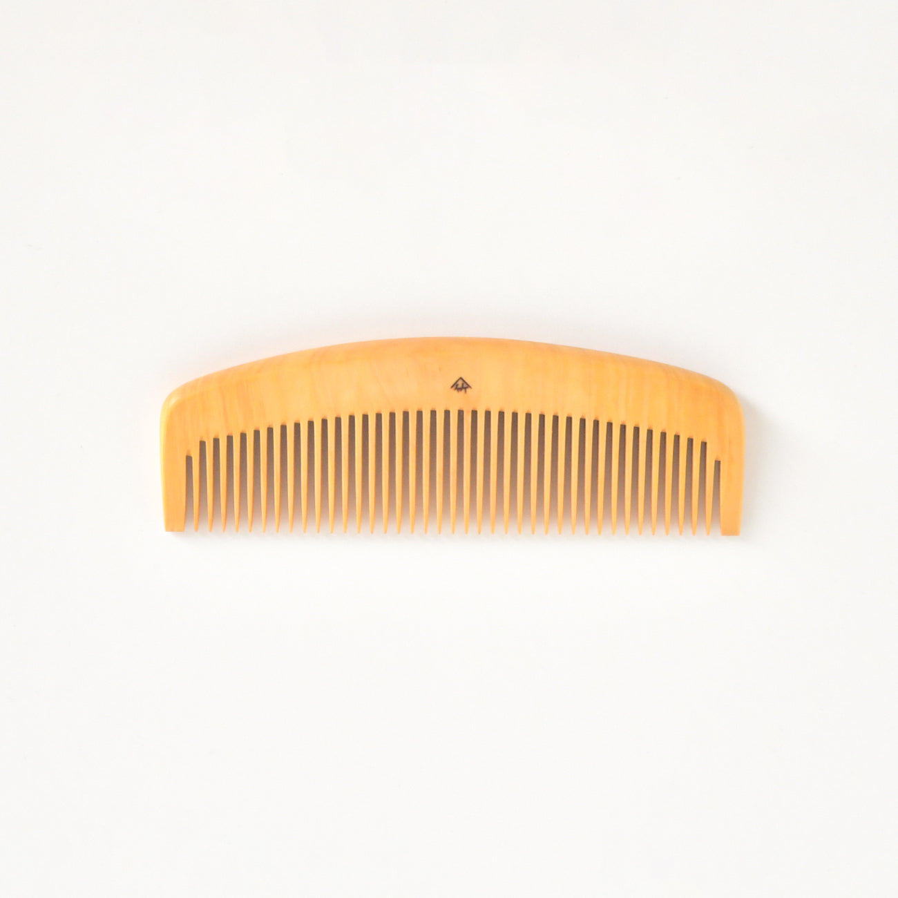 国産さつまつげ材を製材後、10年以上寝かせてから丁寧に加工仕上げした、携帯サイズのつげぐしです。 歯の間隔は約2.8mmです。