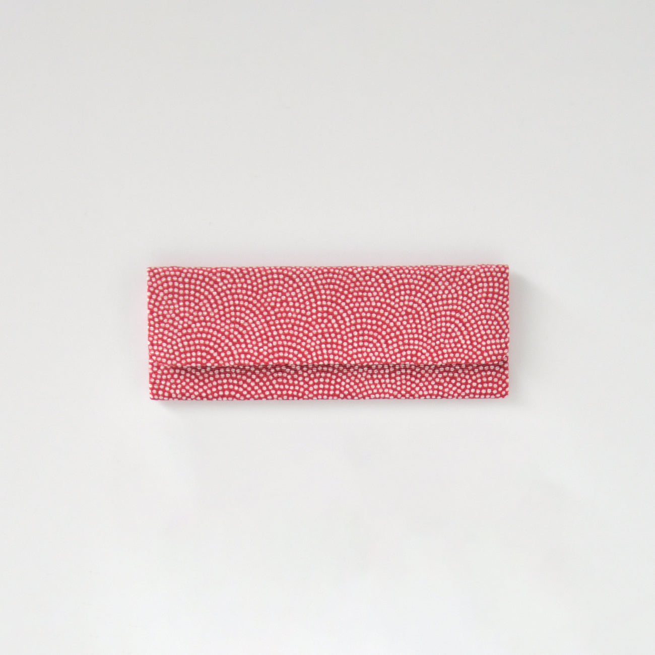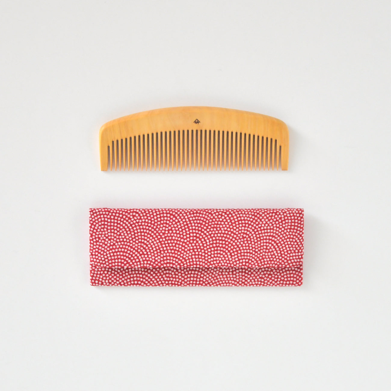 赤色の鮫小紋柄はちりめん生地を使用しておりますので、櫛を取り出すたびにその手触りの良さを実感できます。
