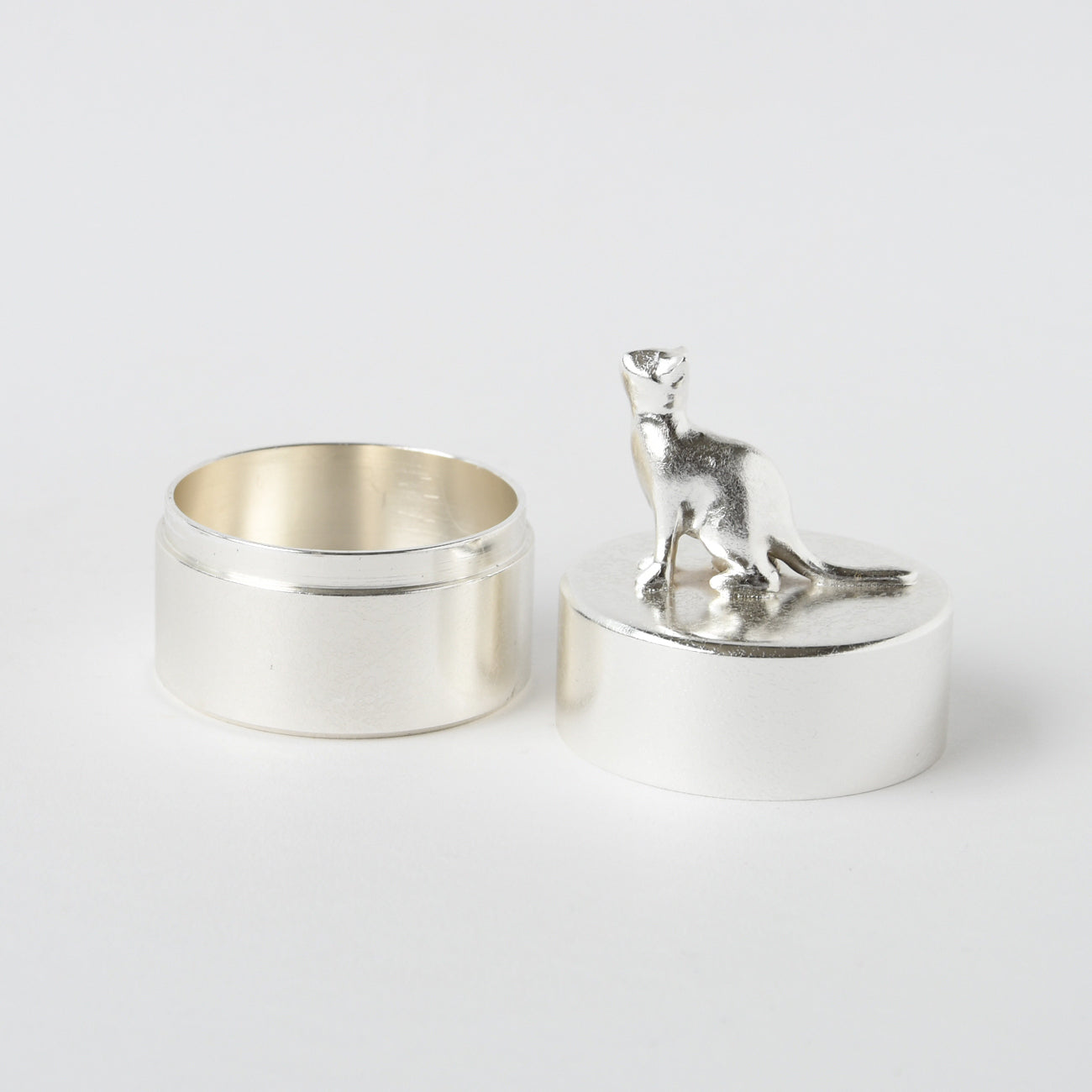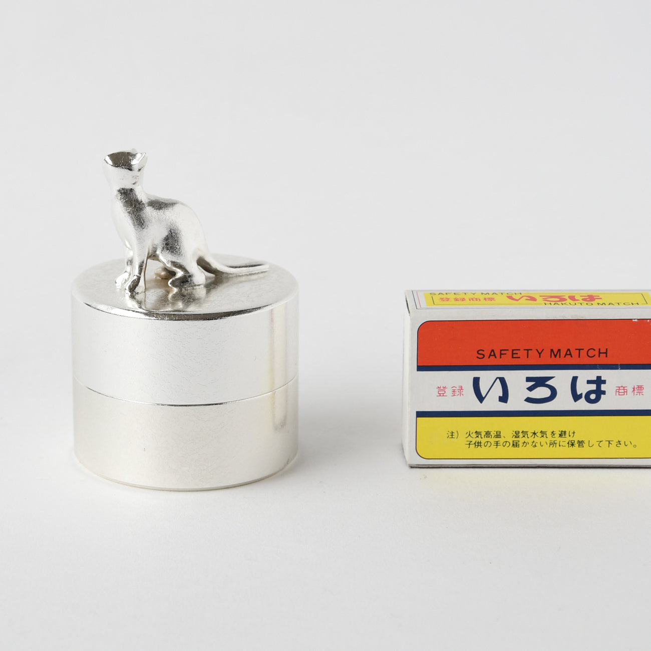 金属工芸の伝統技法を活かし、現代の生活に調和するデザインに仕上げられています。 「ボンボニエール 猫の黄昏」は、日々の暮らしにそっと寄り添うような温もりを感じさせる一品。 職人が一つ一つ丁寧に手作業で仕上げています。