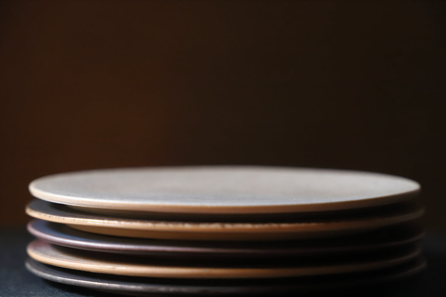 手作業での轆轤成型にこだわり何度も試作を重ね、これまでにあるようで無かった、薄く軽やかで美しい平皿が誕生しました。