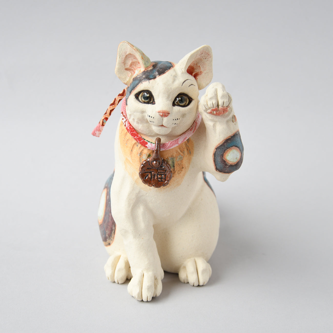 猫らしい容姿の招き猫。上品な表情と佇まいです。