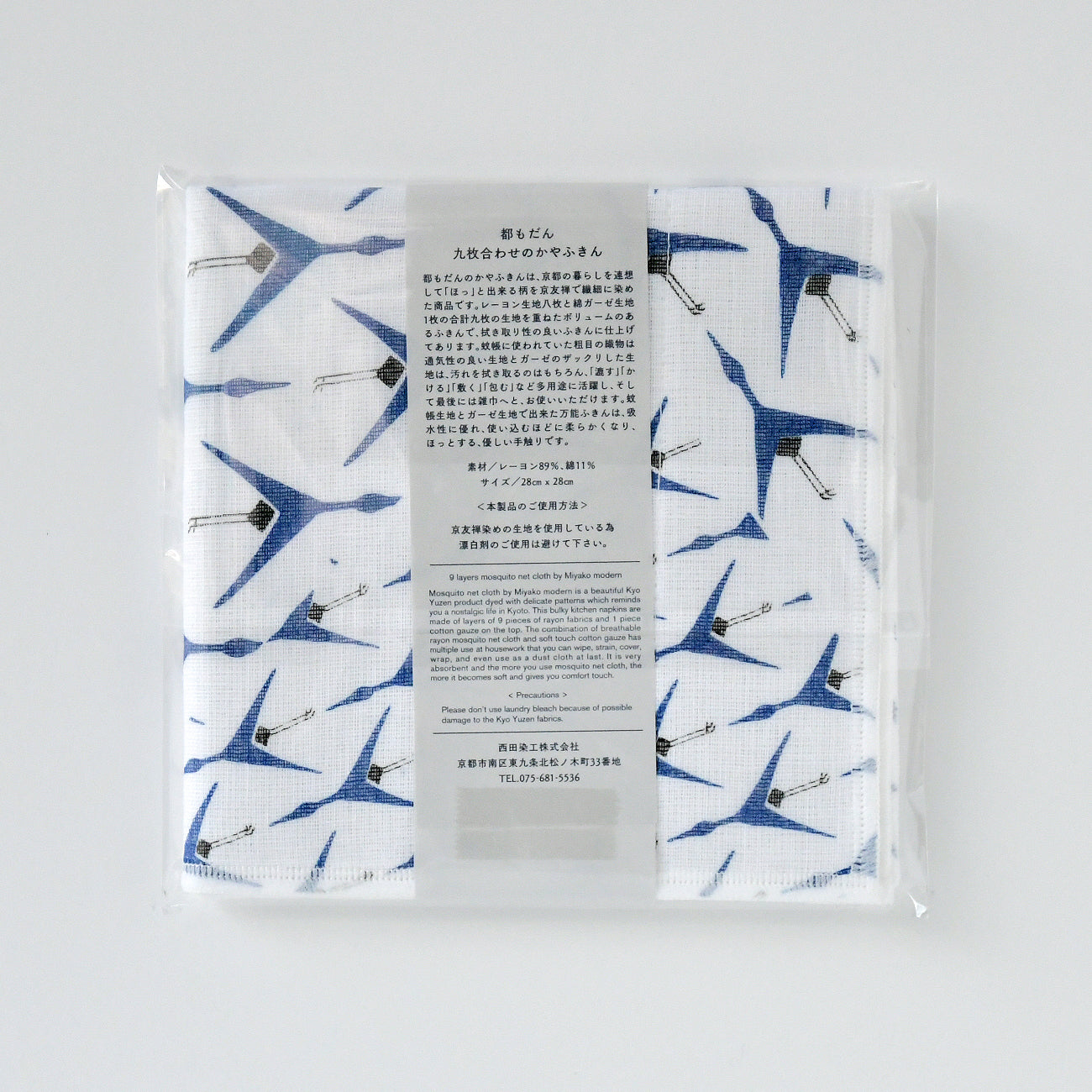 レーヨン生地八枚と綿ガーゼ生地一枚の合計九枚の生地を重ねたボリュームのあるふきんです。